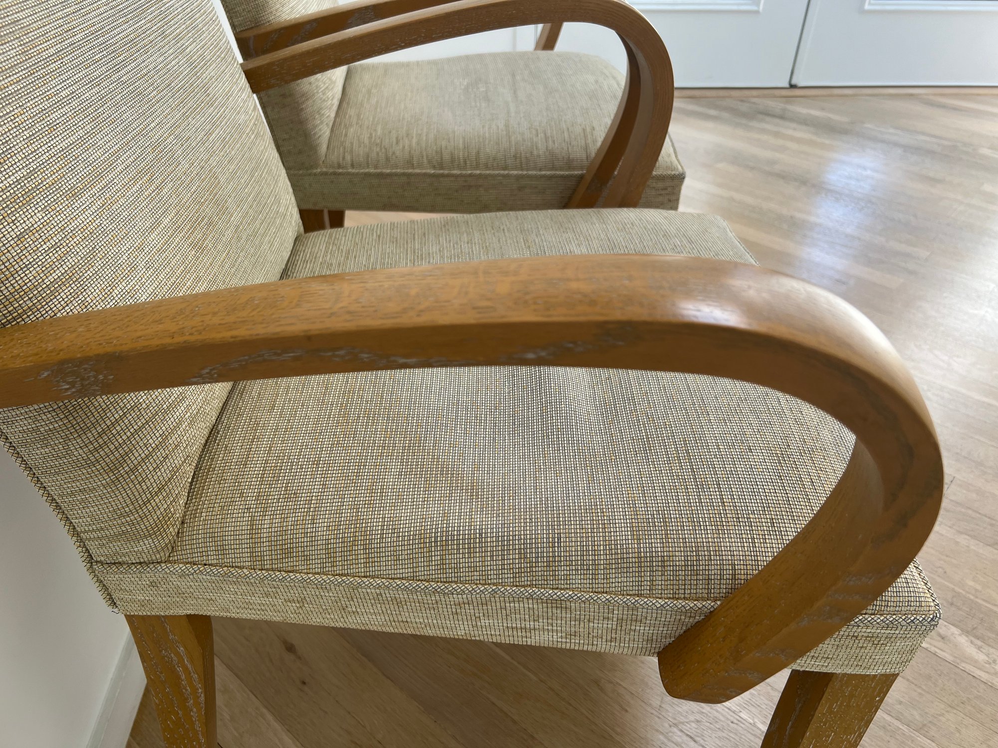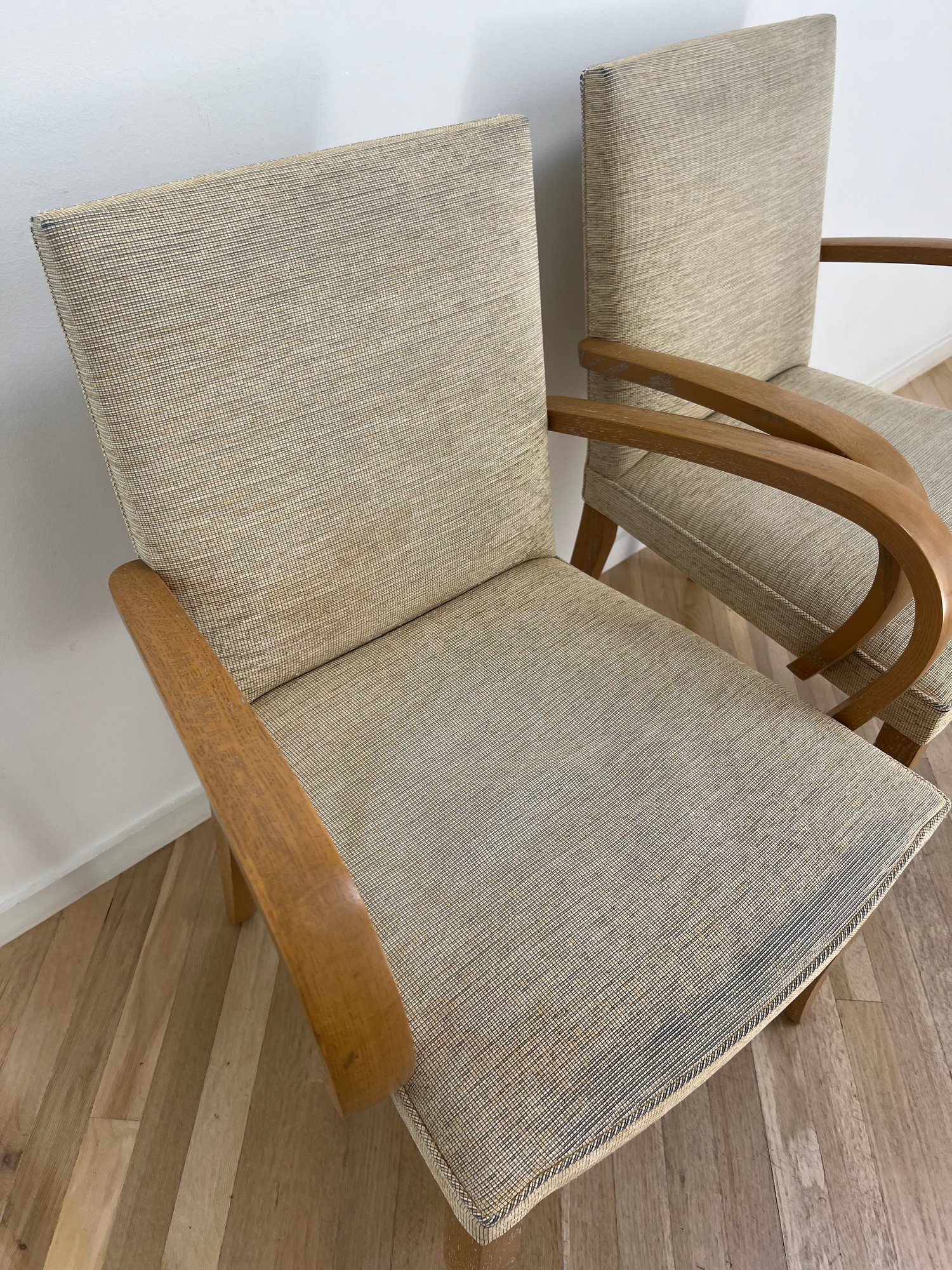 Shows wear to fabric and wood finish
