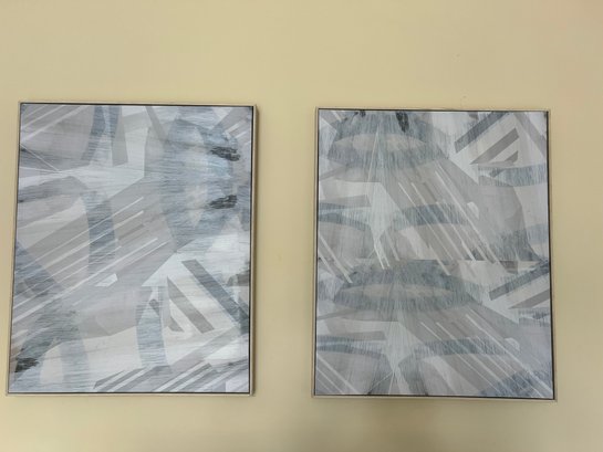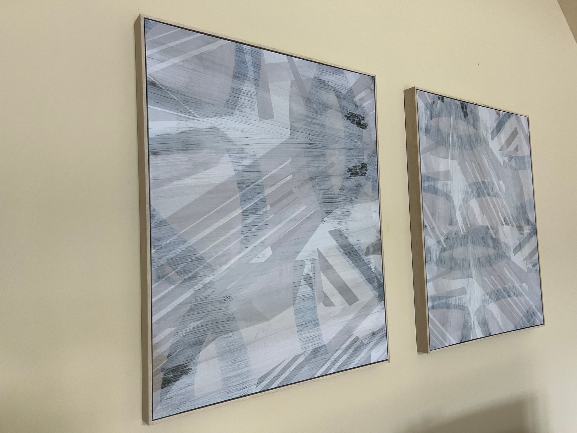 Pair Of Abstract Blue And Gray Art 33" X 27"