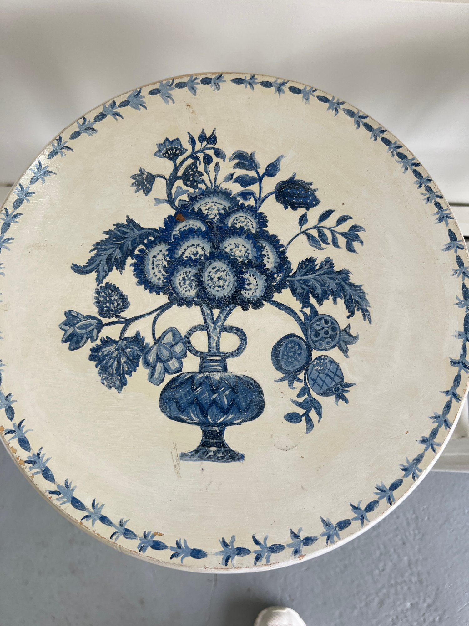 Shows wear and discoloration.