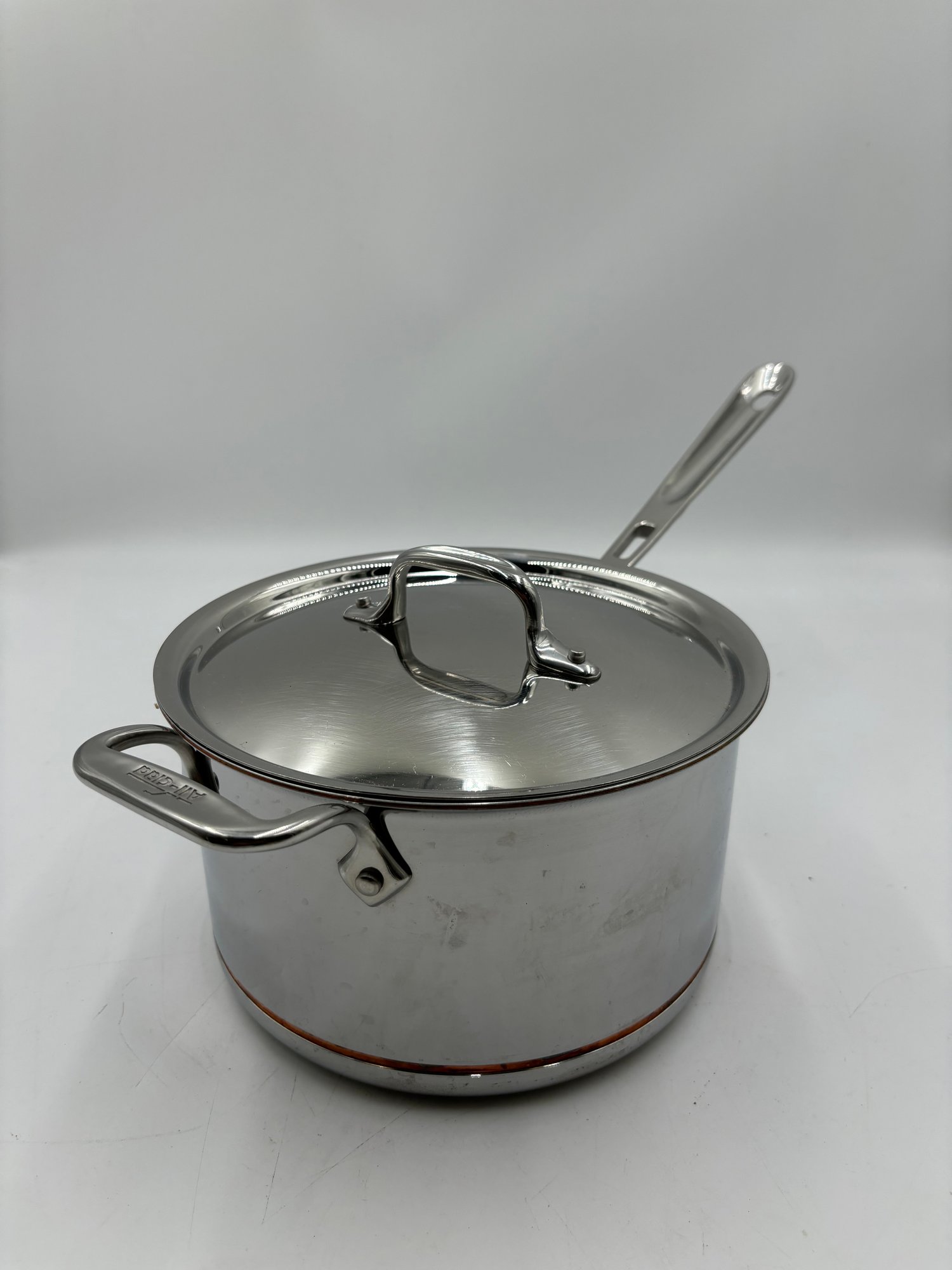 All Clad Copper Core 4 Qt Sauce Pan With Lid.