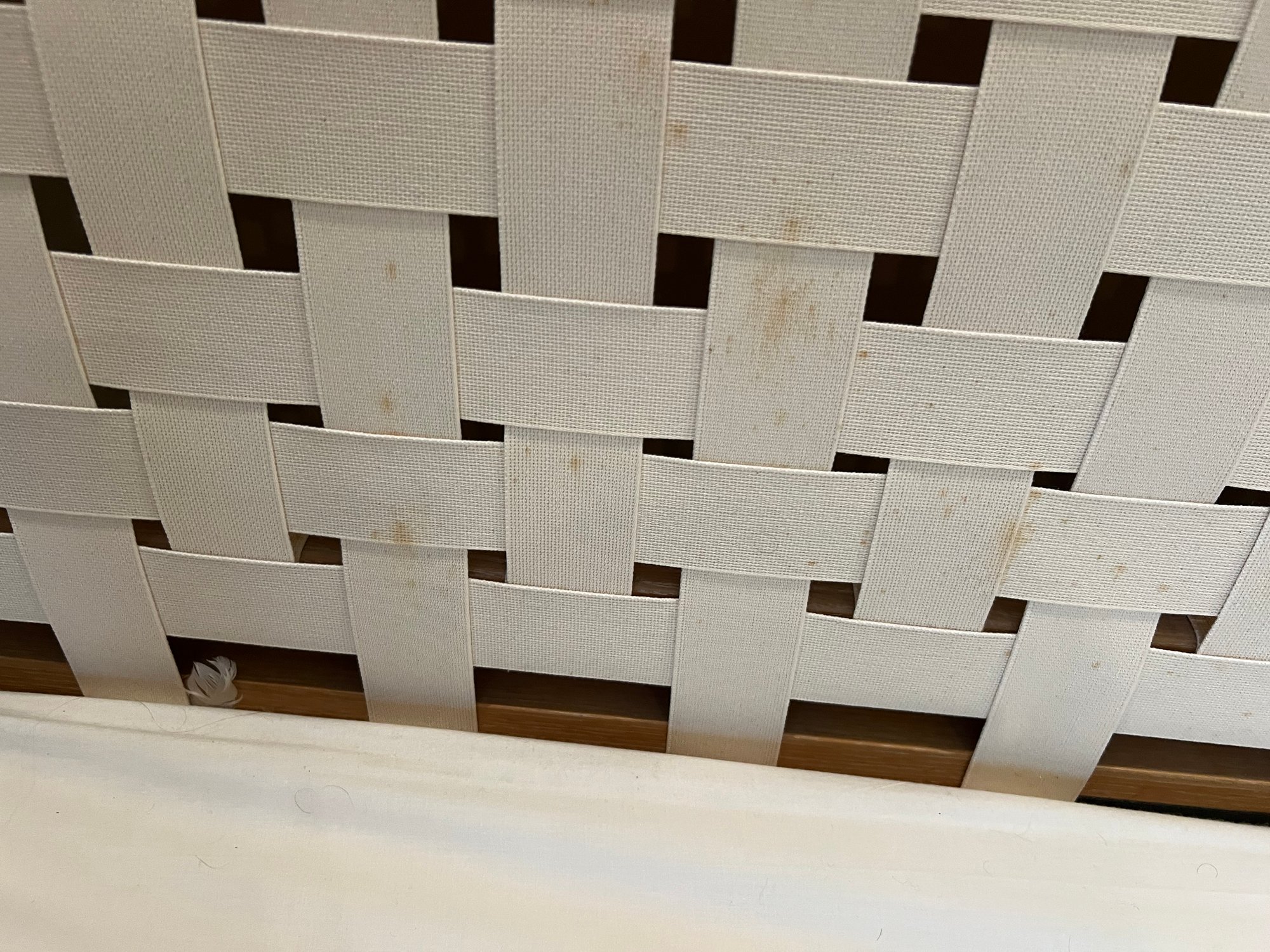 small yellowing on weaving at bottom (would be hidden by mattress)