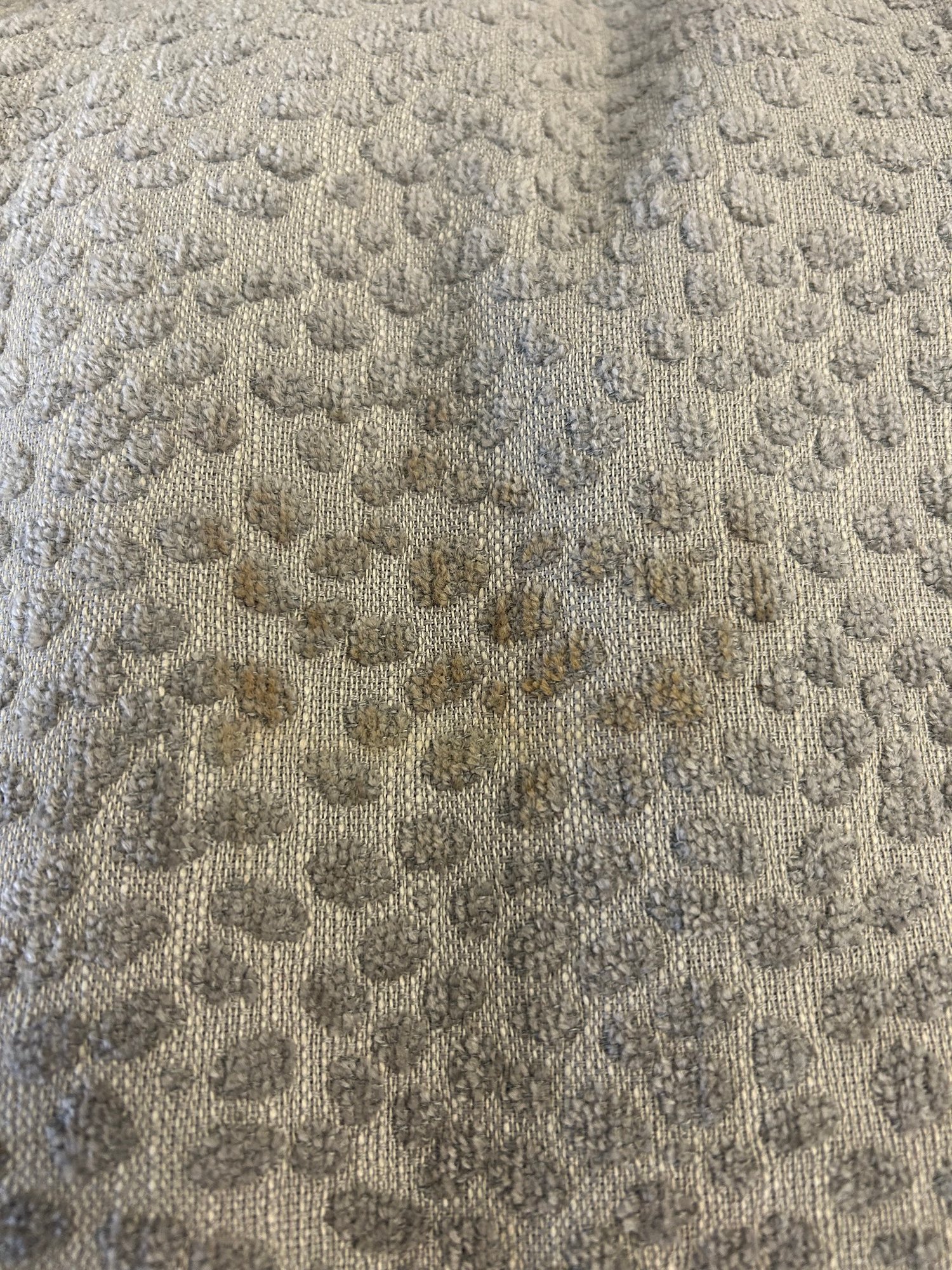 Stain on back of one of the pillows (pictured)