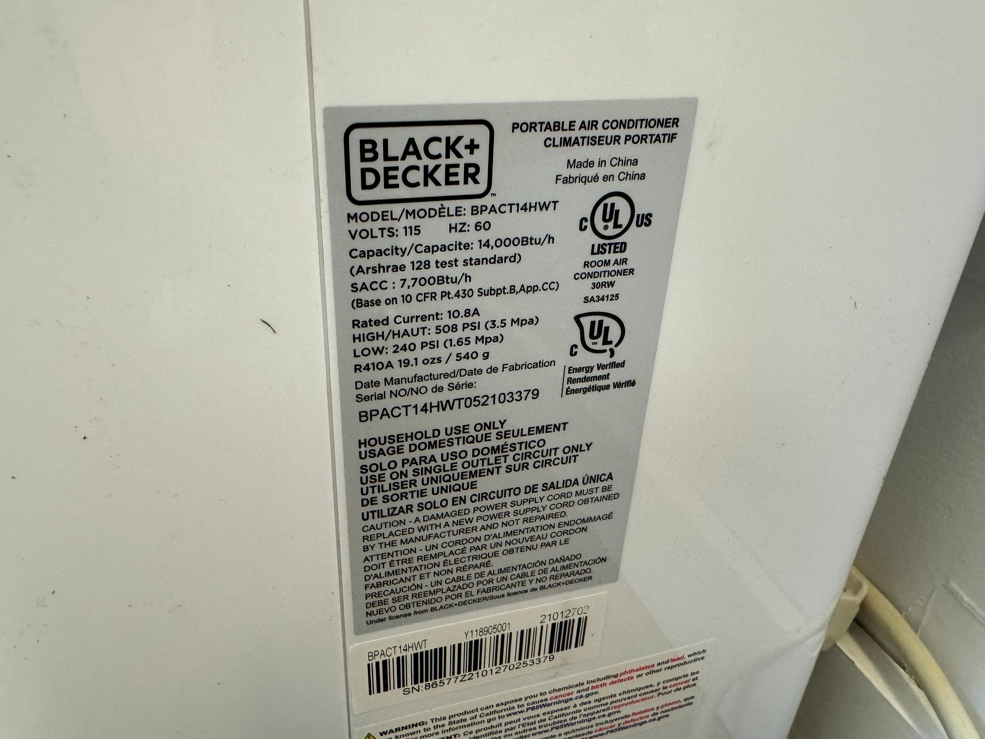 Model #: BPACT14HWT