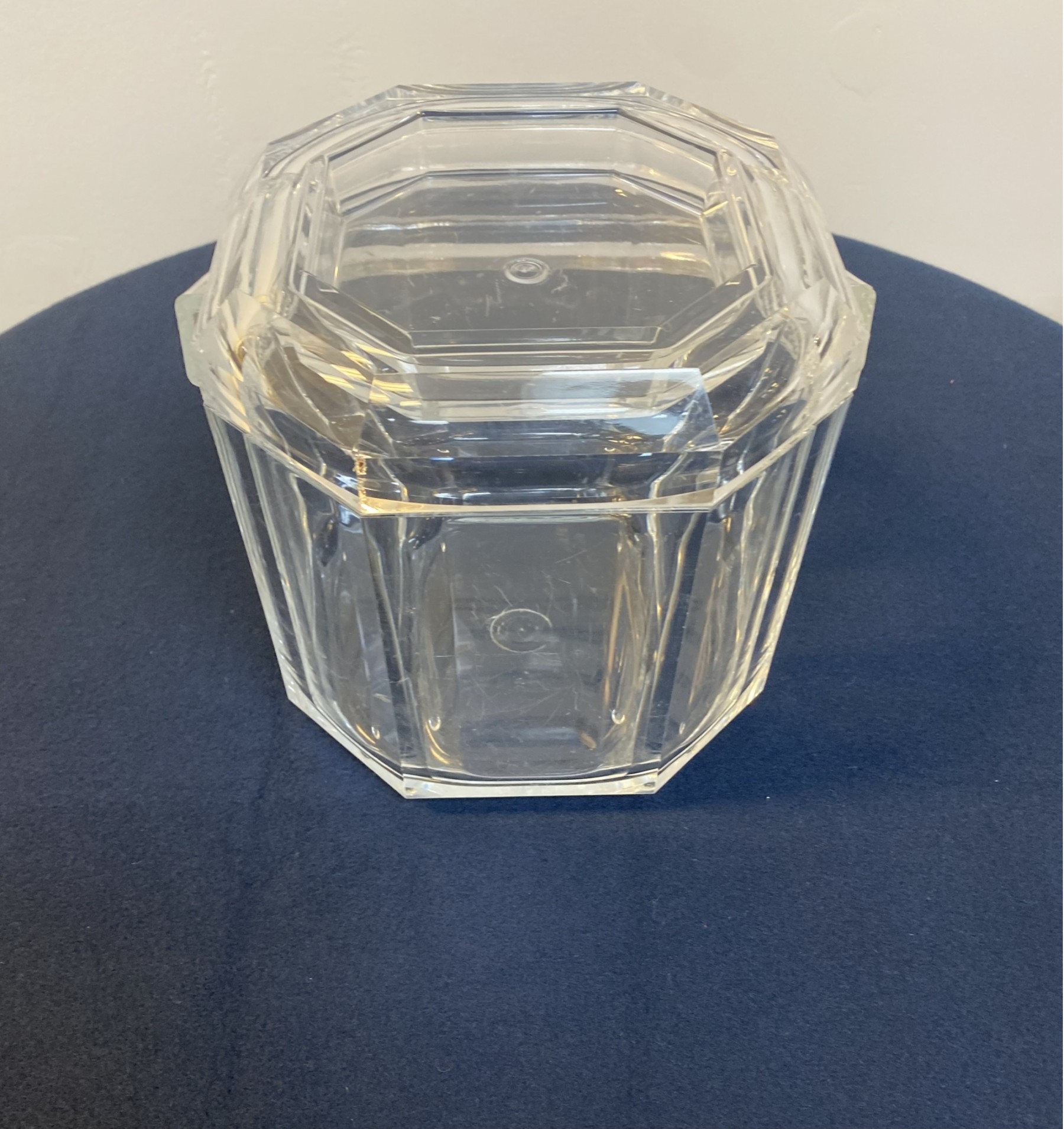 One clear, lucite ice bucket. Good condition, medium sized.