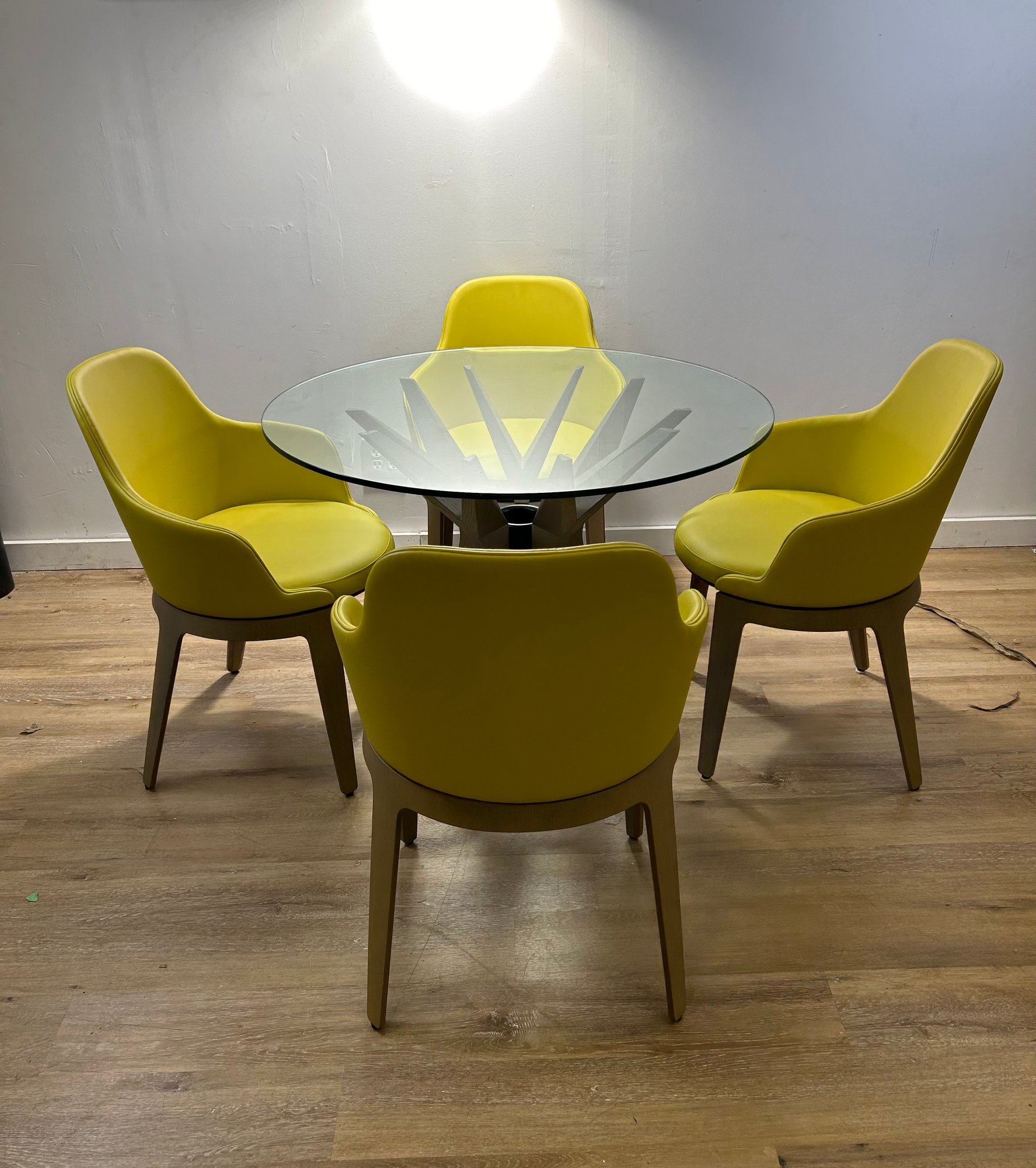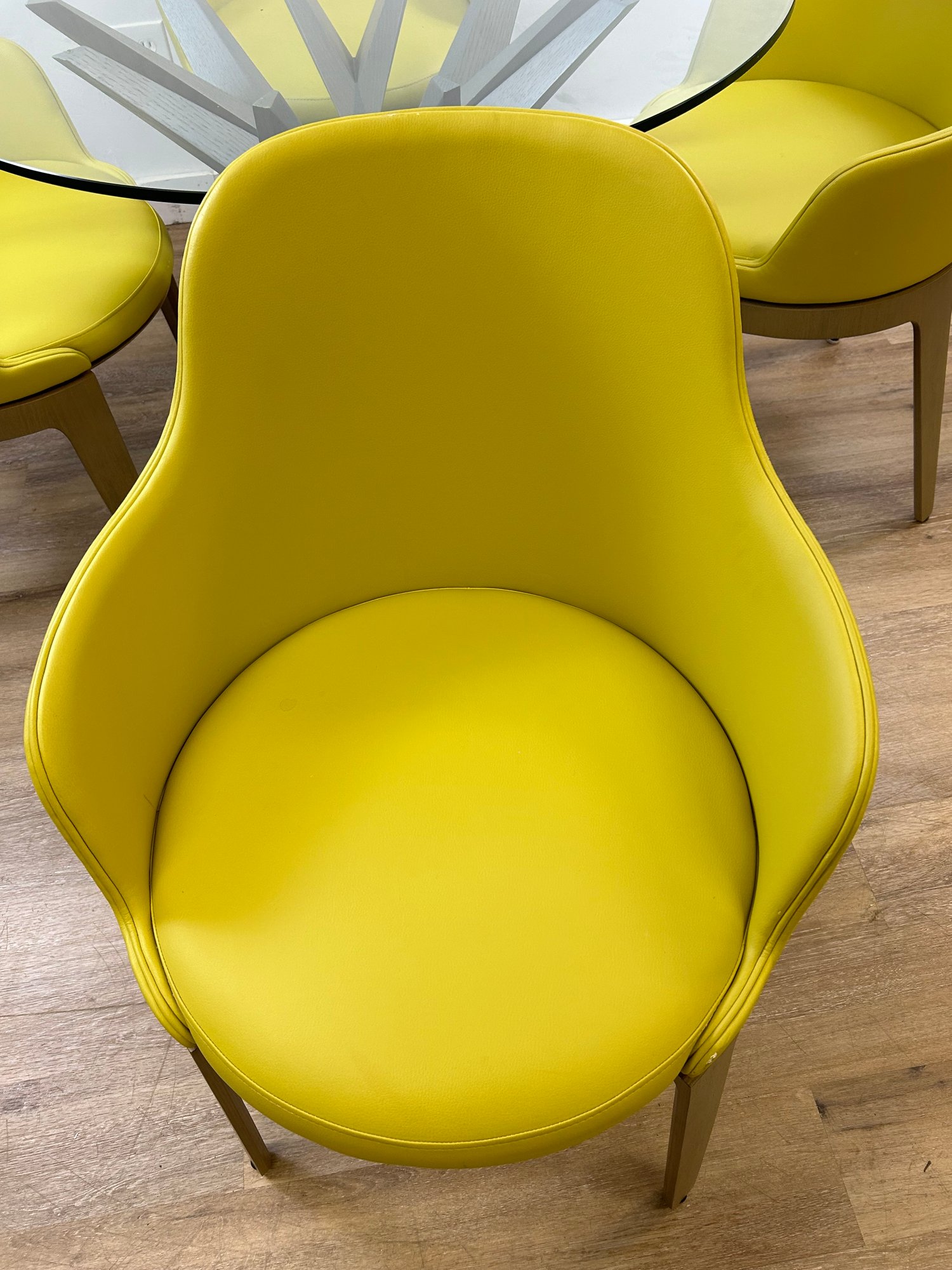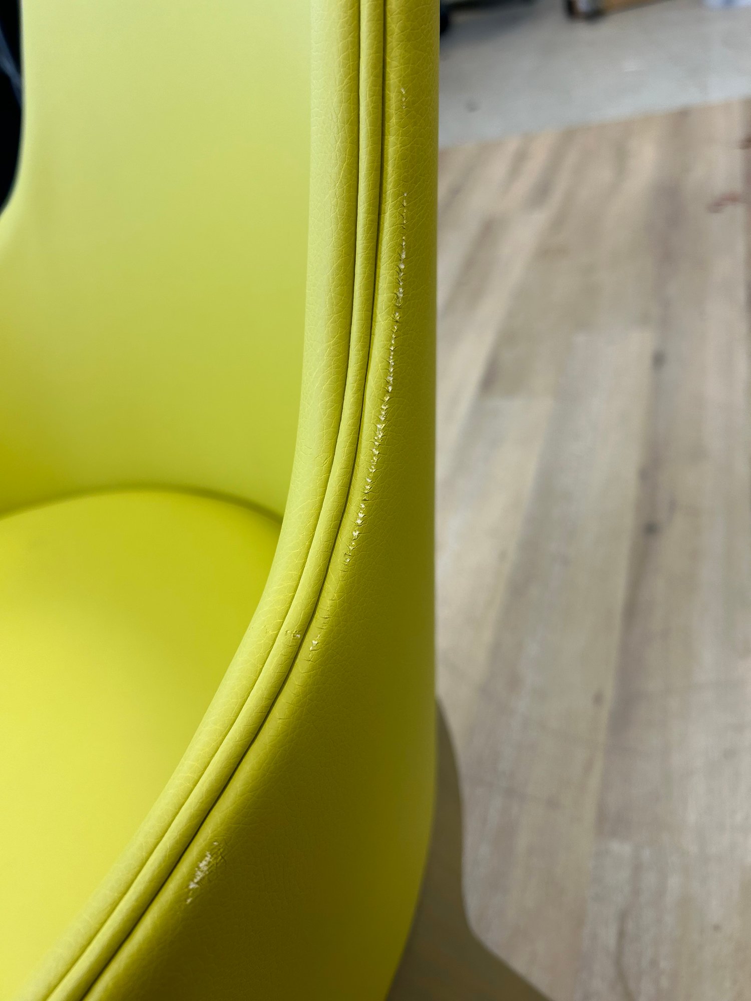 One chair is lightly worn on one arm (pictured)
