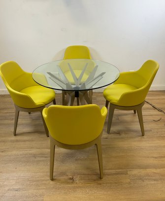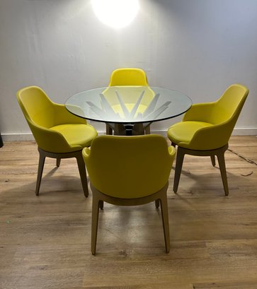 Chairs made of leather material.