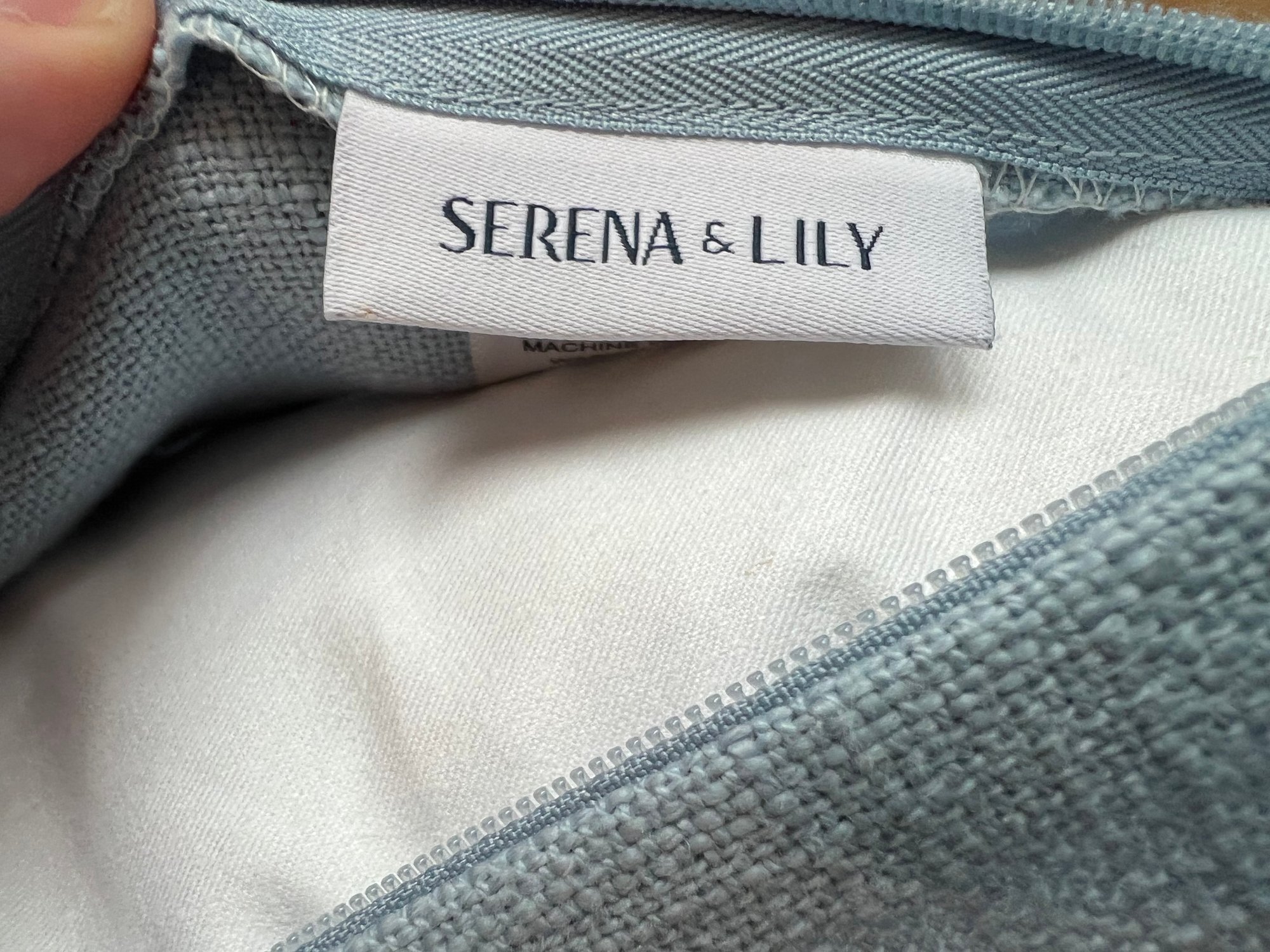 Serena And Lily Blue Ruffled Linen Throw Pillow