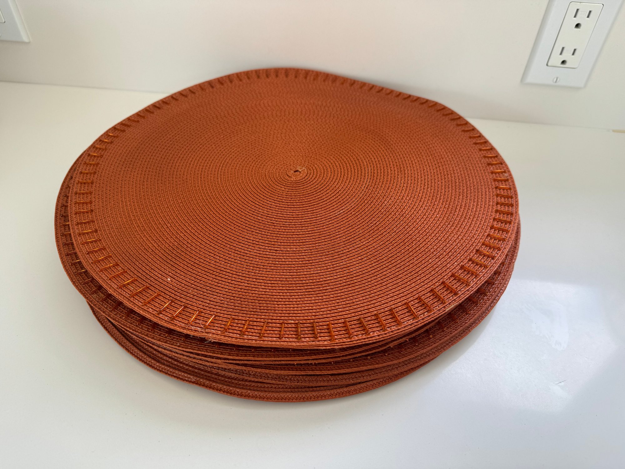 Set Of 12 Rust Fabric Placemats With Beaded Edging
