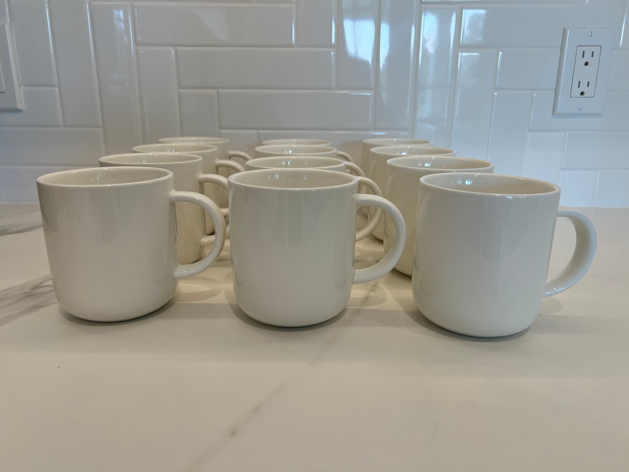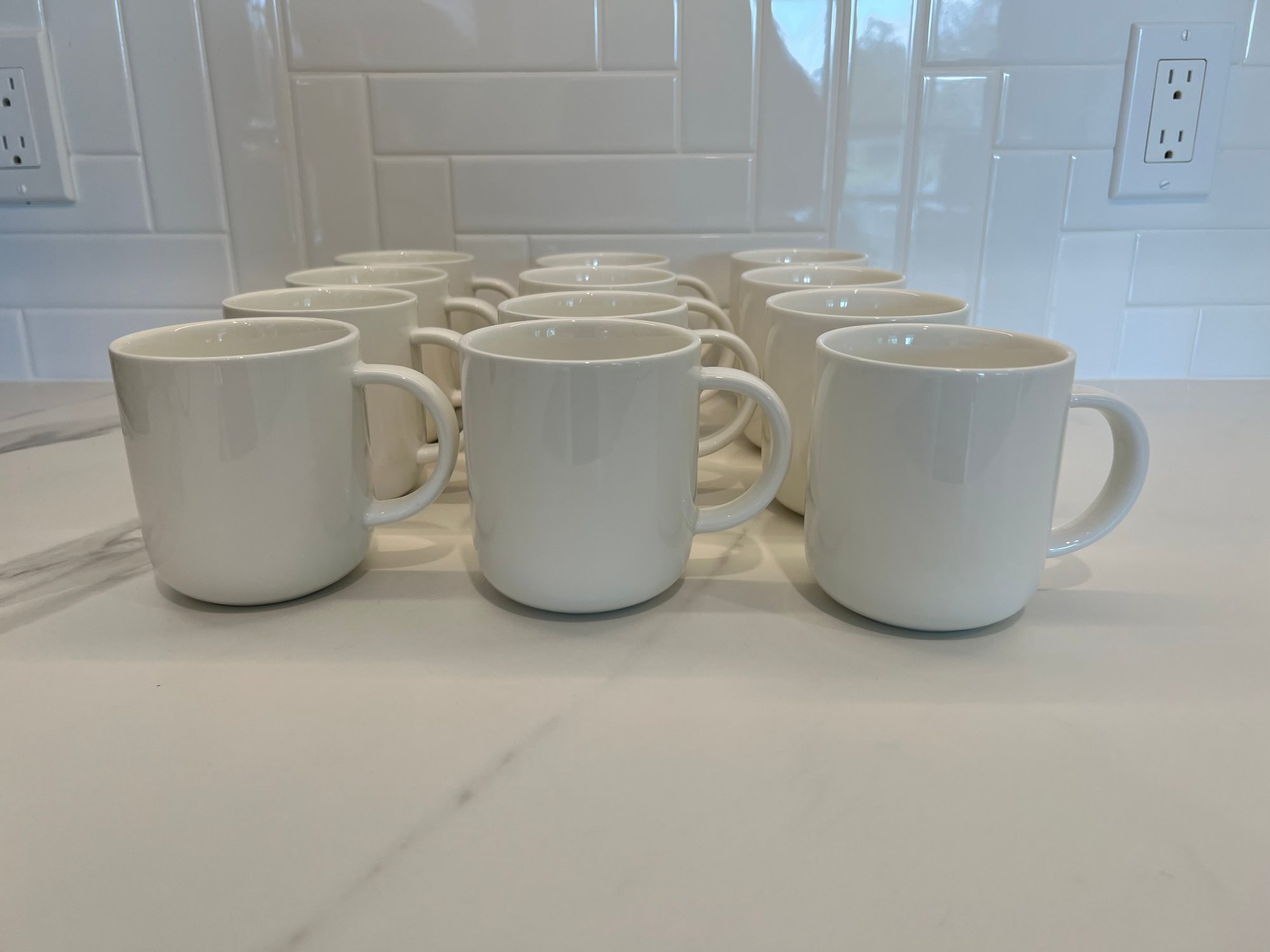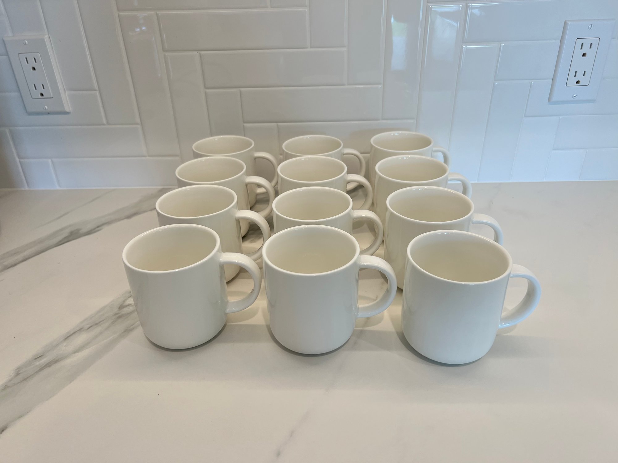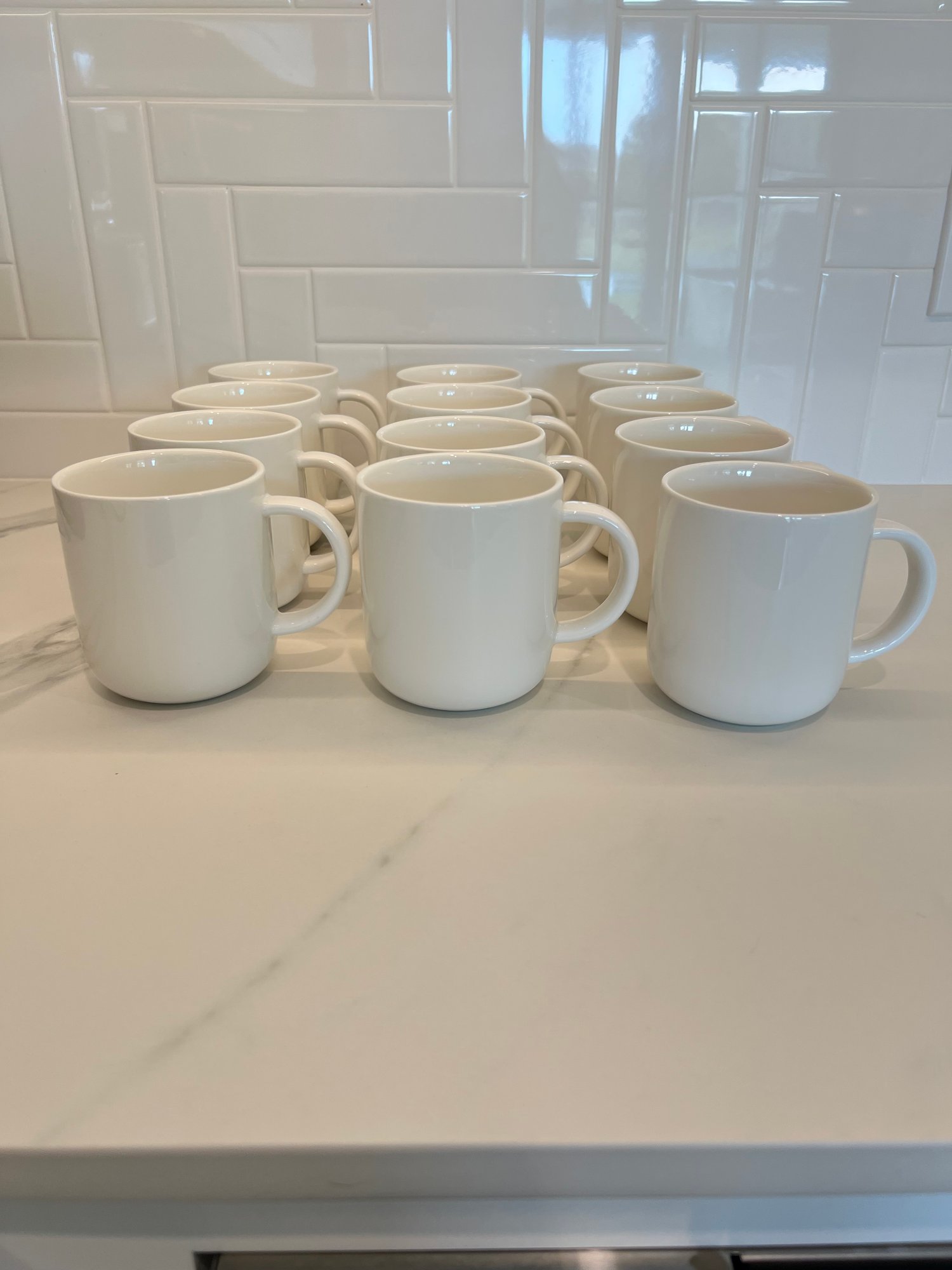 Set Of 12 White Ceramic CB2 Mugs