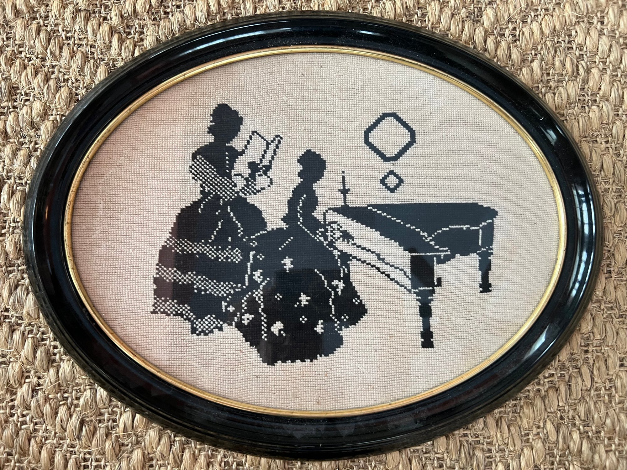 chip to frame on one small needlepoint