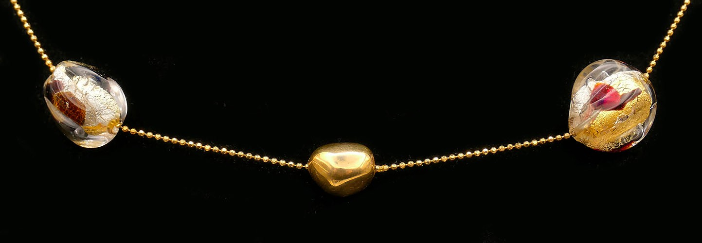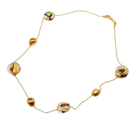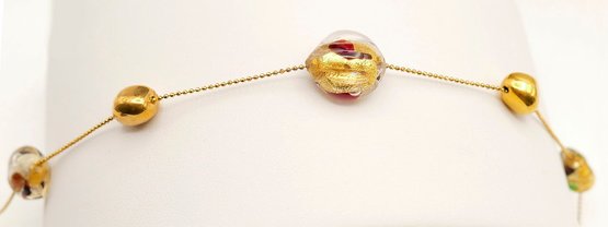 14K Gold And Murano Glass Beads Italian Necklace. In Very Good Condition. 16" Long. Stamped "Italy" and "14KT". Total Weight: 12.2 Grams (.39 Troy Ounces).