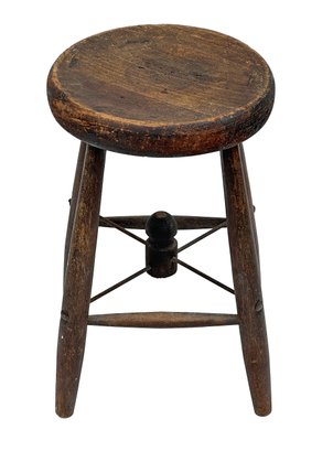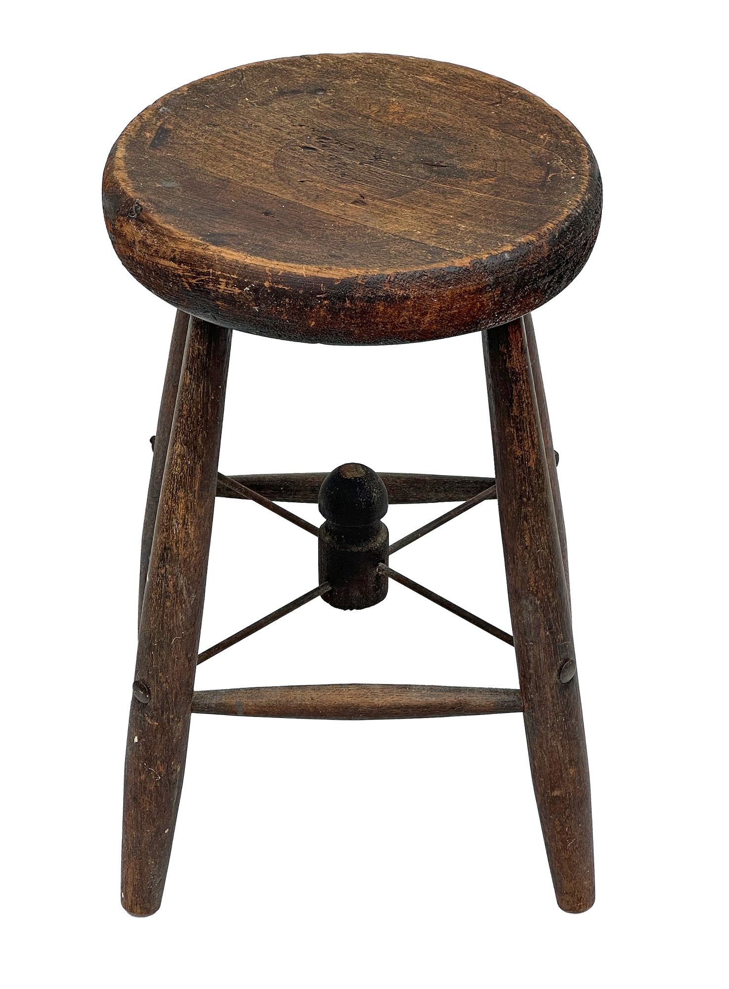 U.S. Munising Military Wood Stool With Hat Rack. Circa 1930's-1940's. Military personnel would hang their hat underneath while sitting. 11" diameter, 18" tall. Nice piece of antique/vintage US Military.