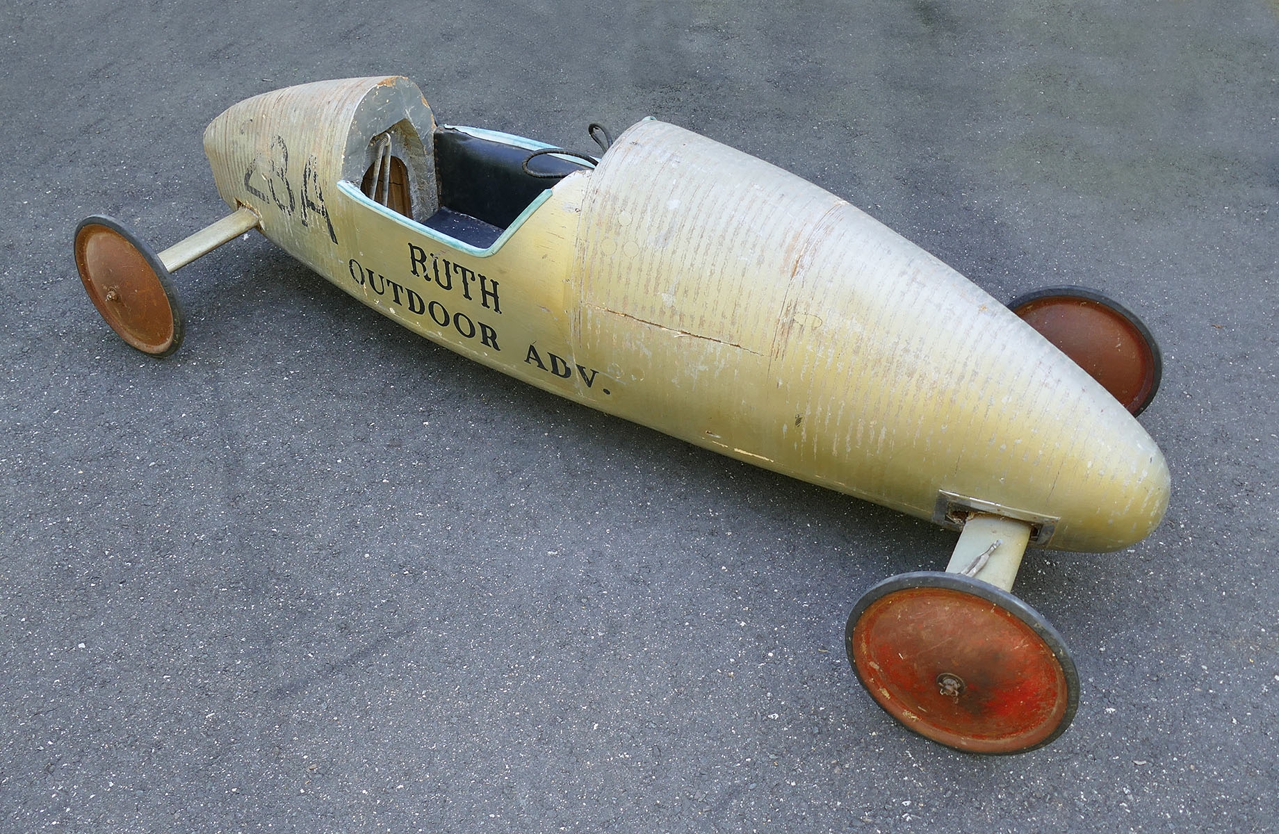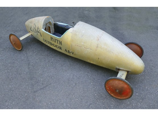 1950's Soap Box Derby Car. Carved wood construction. On 4 Official Soap Box Derby Tires. Untested.