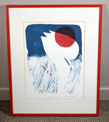 1969 Lithograph By G. Wichtermann "Seed, Root, Sun". Signed, Titled, and Numbered in pencil by the artist. Edition Size: 5. In a vintage frame. 29" x 22" (framed measurements).