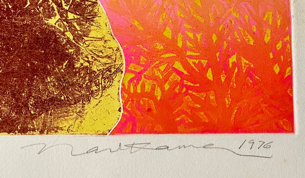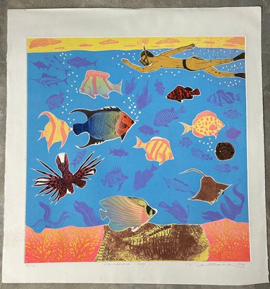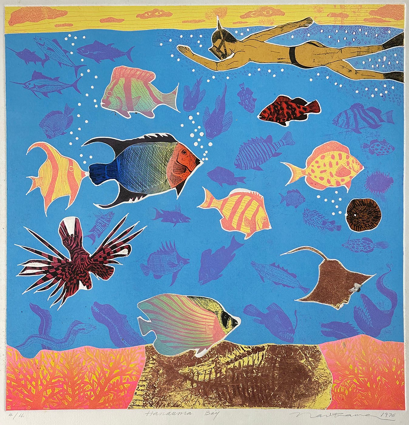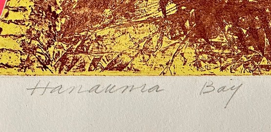1976 Shigeru Narikawa Aquatint Etching "Hawaiian Bay". Circa 1970's. Signed and Titled in pencil by the artist. Edition Size: 4. In good condition; paper edges has some creases but will not be seen once framed. Great Colors. Measurements: 27.5" x 28.5" (paper)