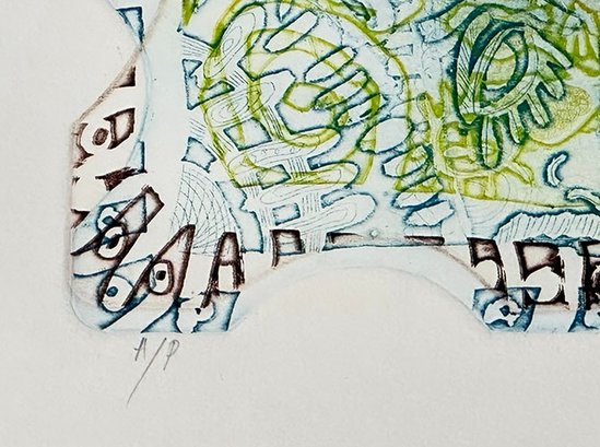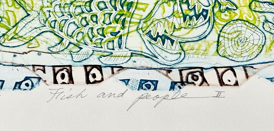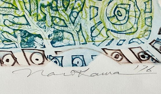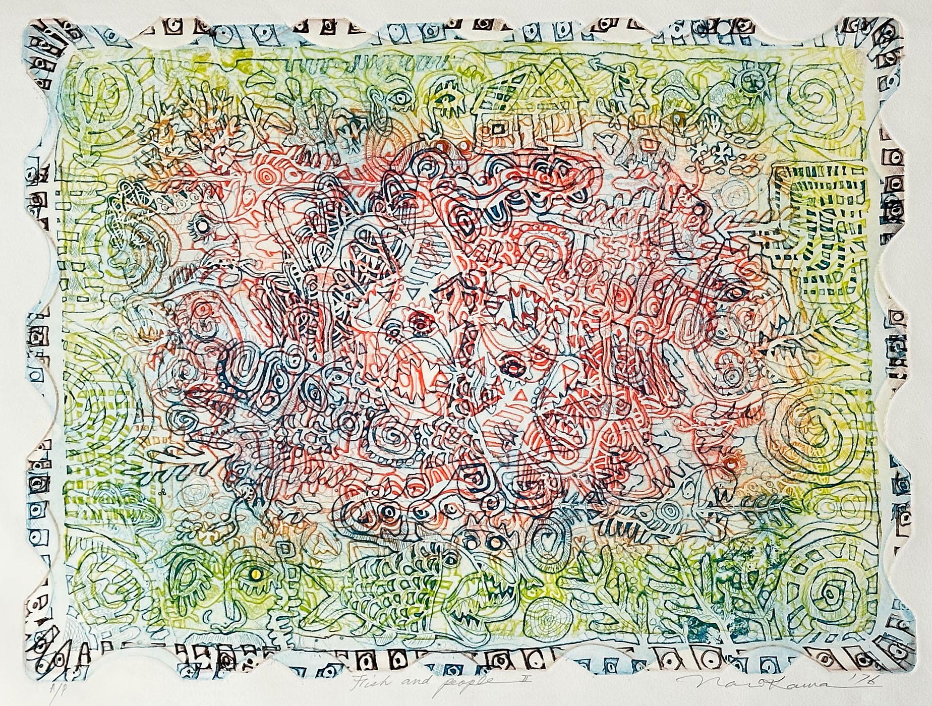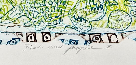 1976 Shigeru Narikawa (Japan, B. 1946) Aquatint Etching "Fish And People II". Signed in pencil by the artist. Artist's Proof. In Very Good Condition. Unframed. Measurements: 22" x 30" (paper)