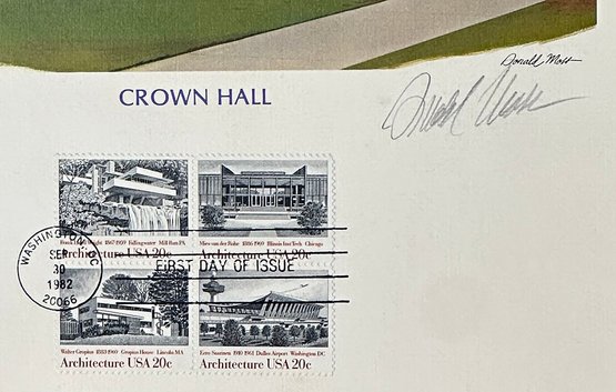 1982 Donald Moss Hand Signed USPS First Day Of Issue Stamp Sheet. Hand Signed in Pencil. In Excellent Condition. 10.5" x 13.375 (Paper Size).