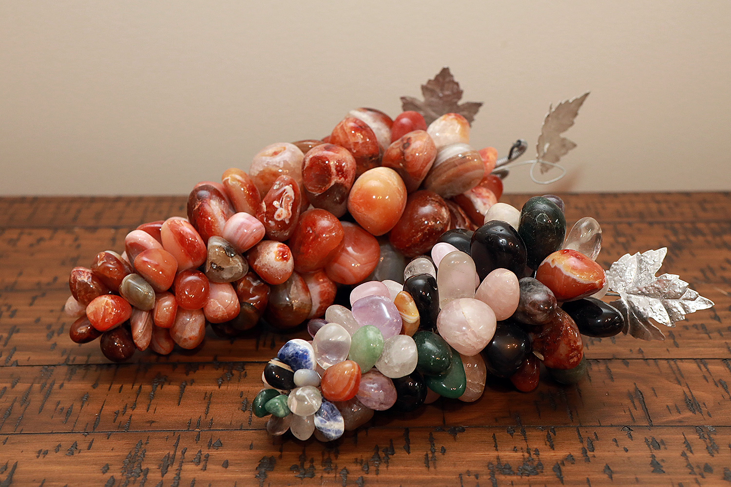 2 Large Vintage Polished Agate Stone Grape Clusters. With Metal Leaves. Approximately 10" & 12" Long. In Very Good Condition.