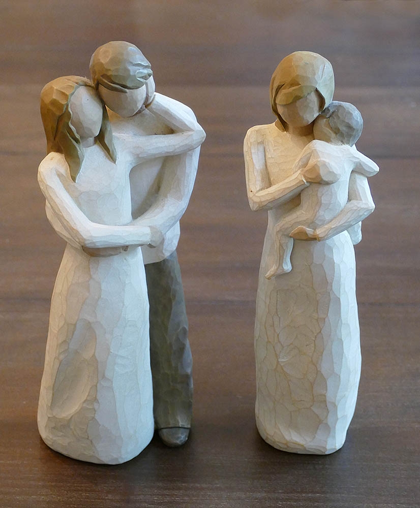 2 Different Willow Tree Carved Resin Figurines By Susan Lordi - Together & Child Of My Heart. 9" & 8.5" Tall. Both are in good condition.