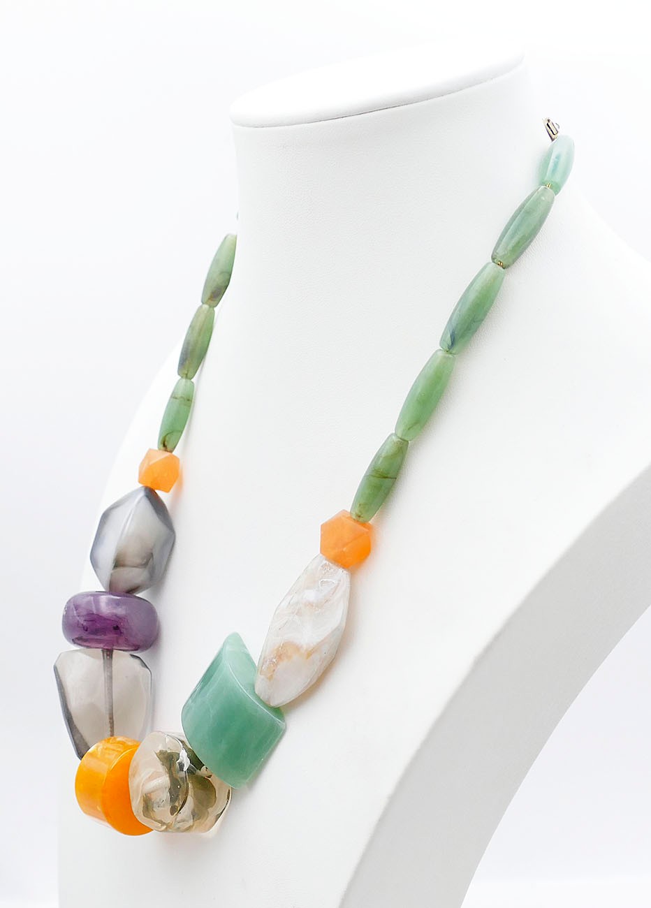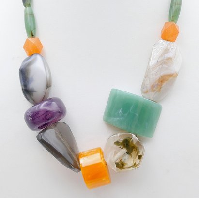 20" colorful Faceted Bead Necklace. Plastic Construction. In Good Condition.