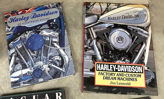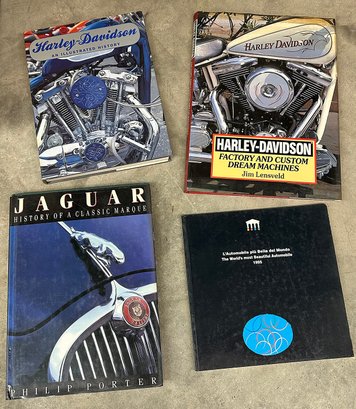 4 Automotive / Motorcycle Books - Harley Davidson (2), Jaguar, 1995 The World's Most Beautiful Automobile.