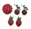 5 Vintage Joseph Warner Rhinestone Brooches - Strawberries, Cherries, & Large Dome. All brooches are marked on the backs "WARNER". In very good condition with no missing stones. Rare and hard-to-find Warner jewelry from a single collector!