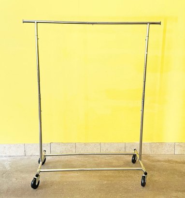Adjustable Rolling Clothes Rack. In Very Good Condition.