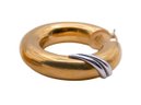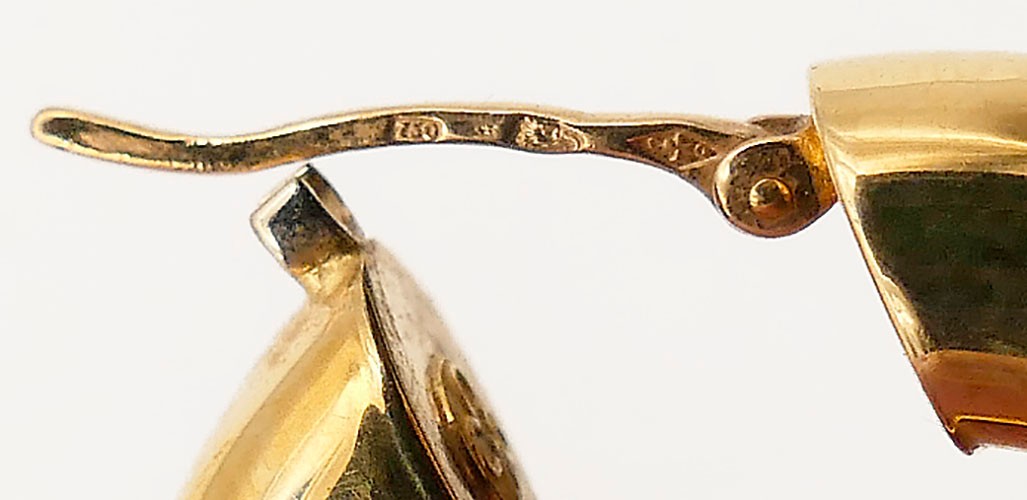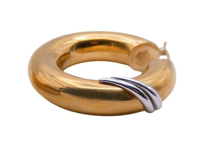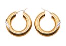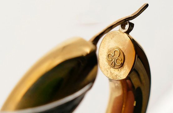 Pair Of 18K Gold Hoop Earrings. Includes the makers mark are stamped "750". 75% Pure Gold. 1.25" Round. In good condition. Total Weight: 6.5 Grams (.21 Troy Ounces).