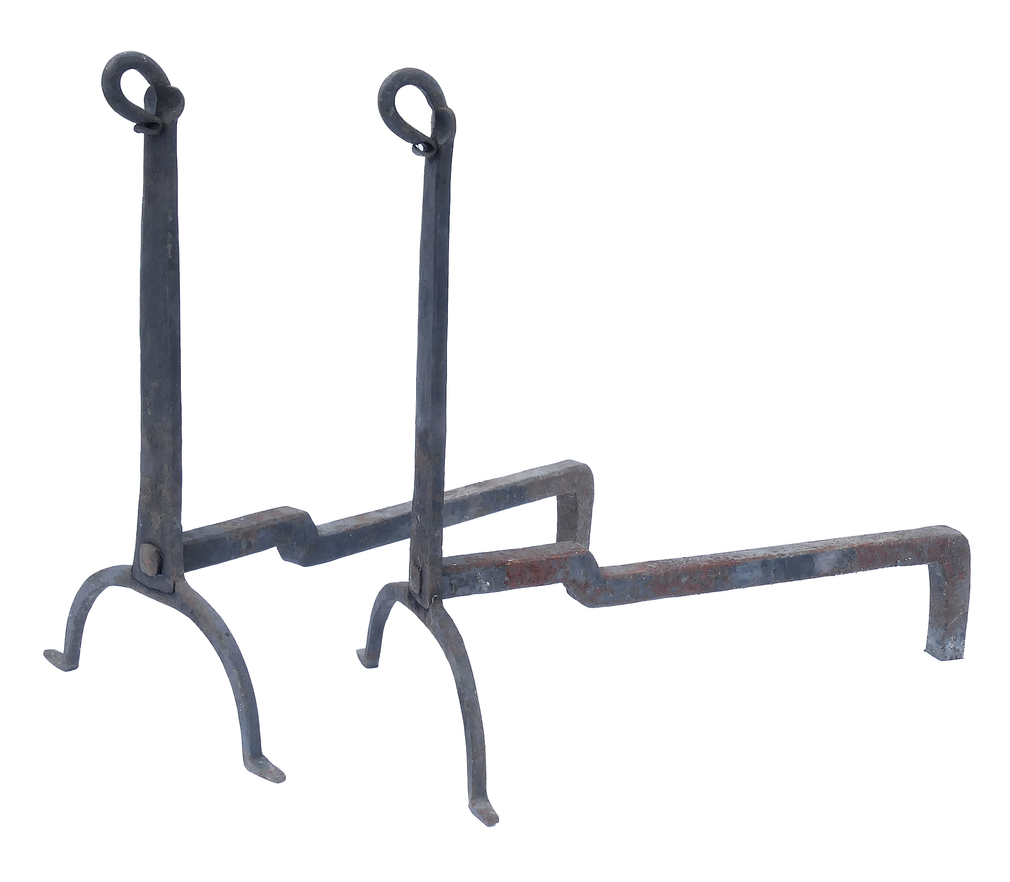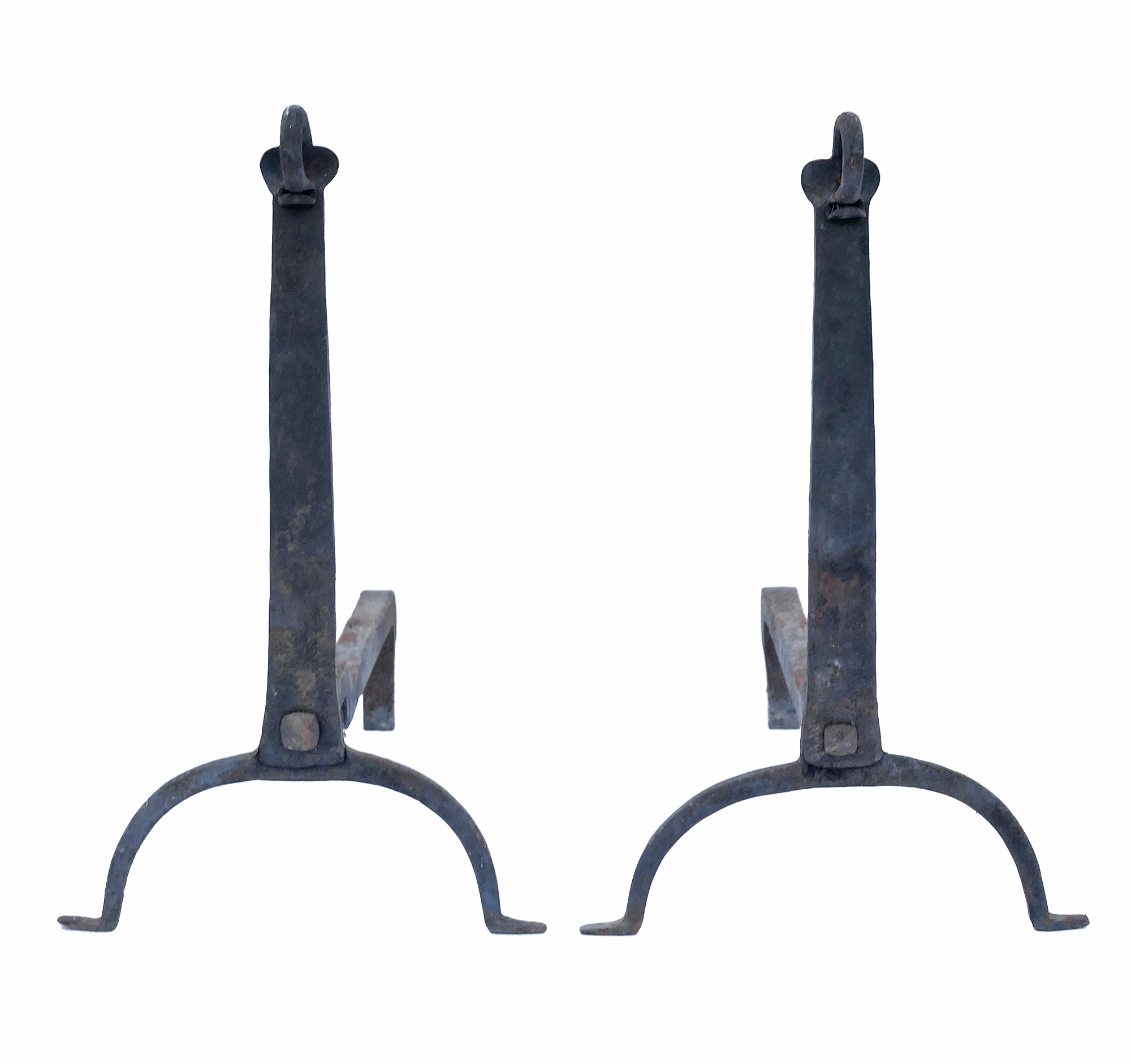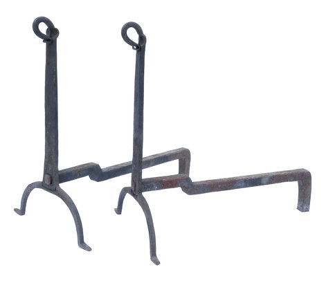 Pair Of Antique Hand Forged Iron Andirons.