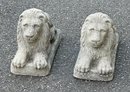 Pair Of Concrete Outdoor Garden Lion Sculptures. Solid Concrete. In Very Good Condition. 17"long, 7"wide, 10"tall (each).