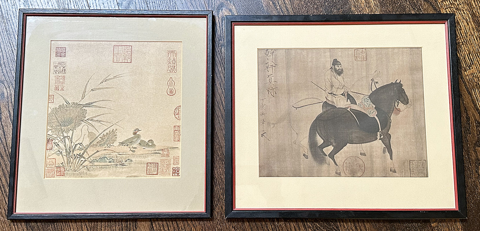 Pair Of Framed Chinese Prints. In good condition. 15.25" x 16" / 18.25" x 16" (framed)