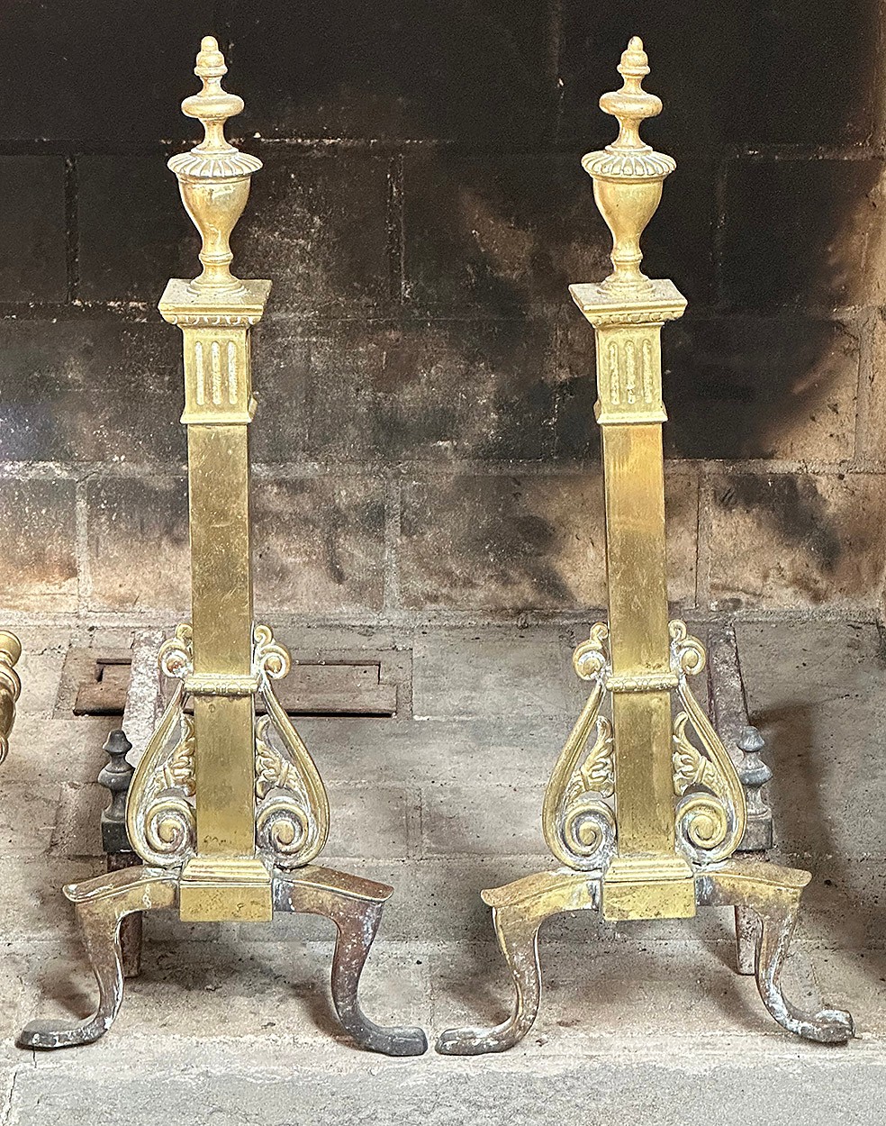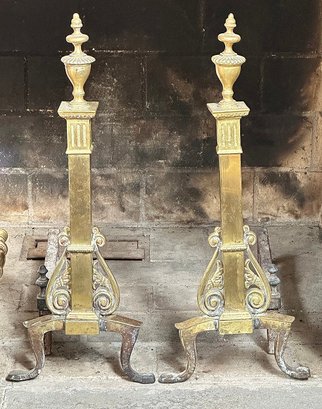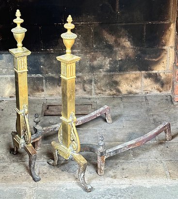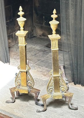 Pair Of George III Brass Andirons. In good condition.