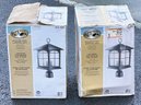 Pair Of Hampton Bays 3-Light Aged Iron Steel Outdoor Weather Resistant Post Lights. Model 272-775. Both are New and never used. The original cost was approx $200.