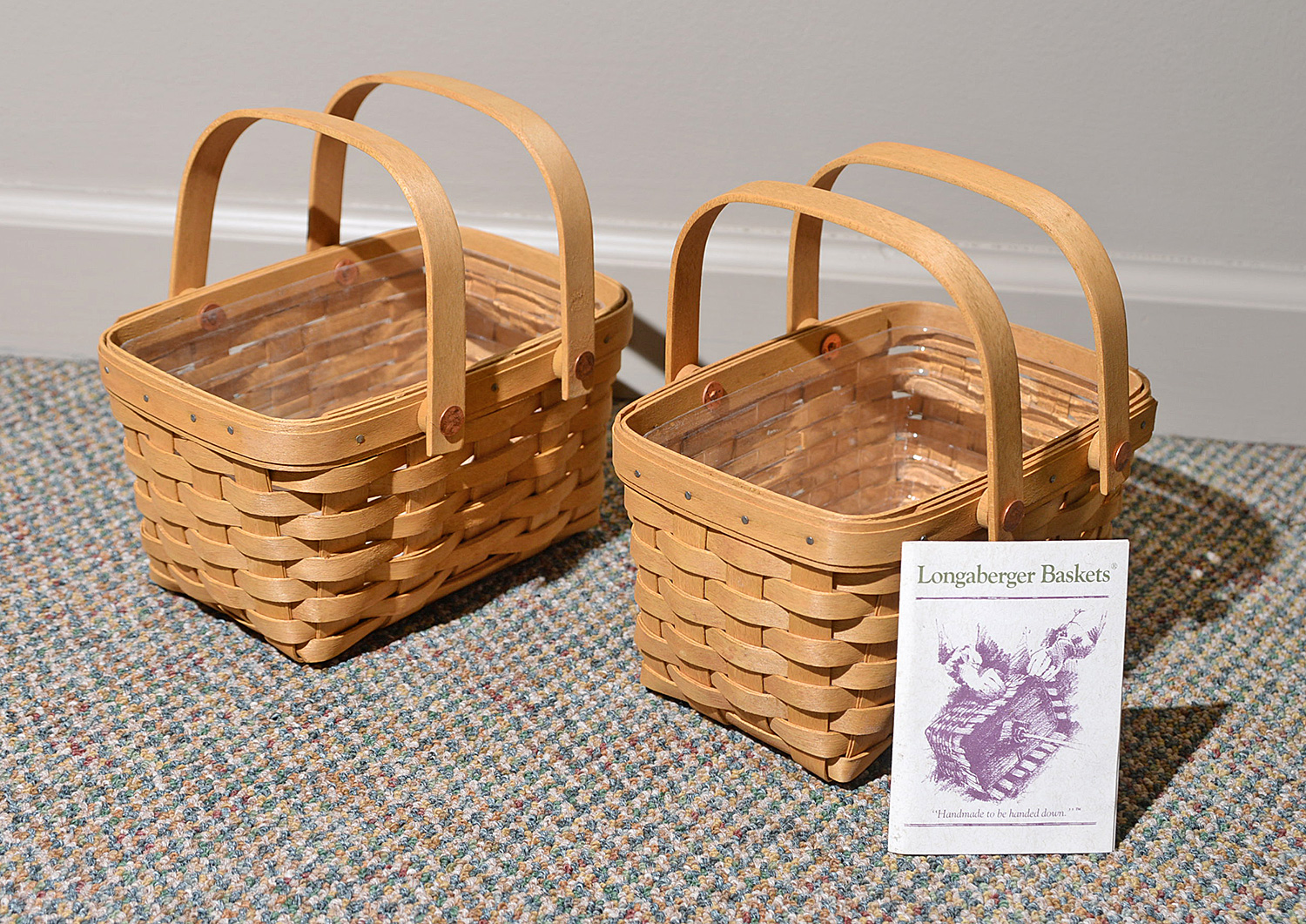 Pair Of Handwoven Longaberger Baskets. From the early-2000's. Signed on the bottom. In Excellent Condition. Approx. 9" x 5" (each)