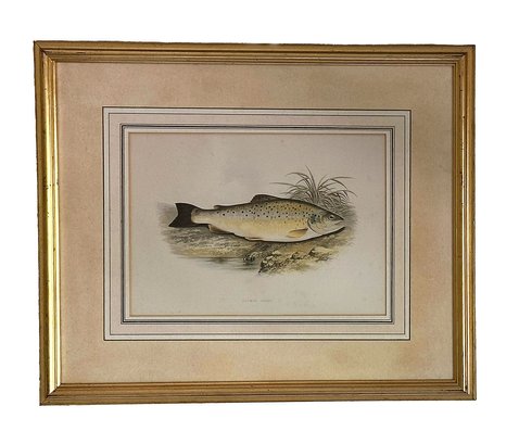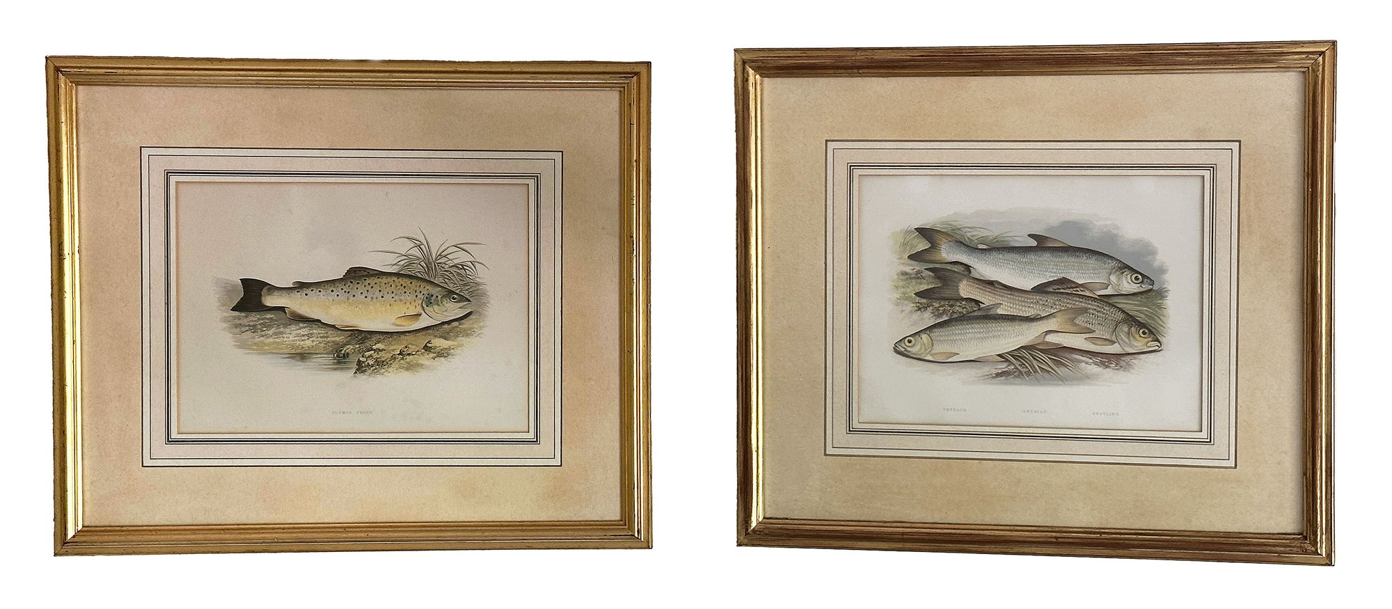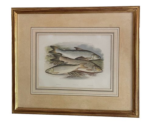 Pair Of Lithograph Prints From W. Houghton's "British Fresh-Water Fishes". Framed. In Good Condition. 22" x 18.5" (framed)