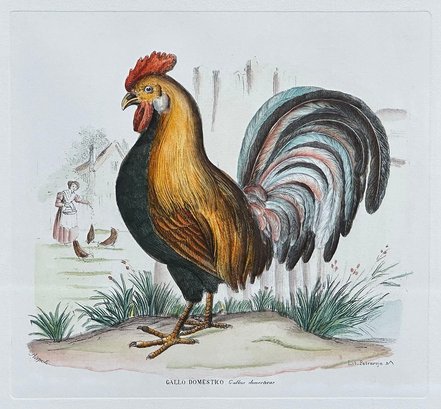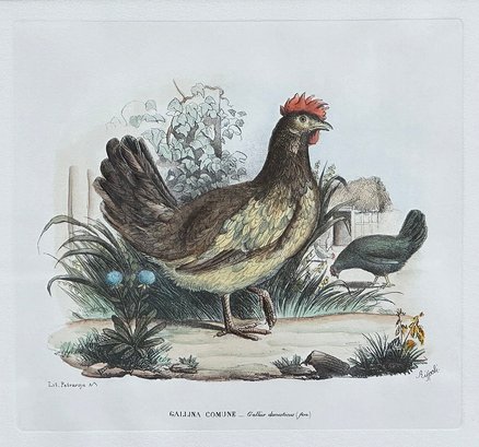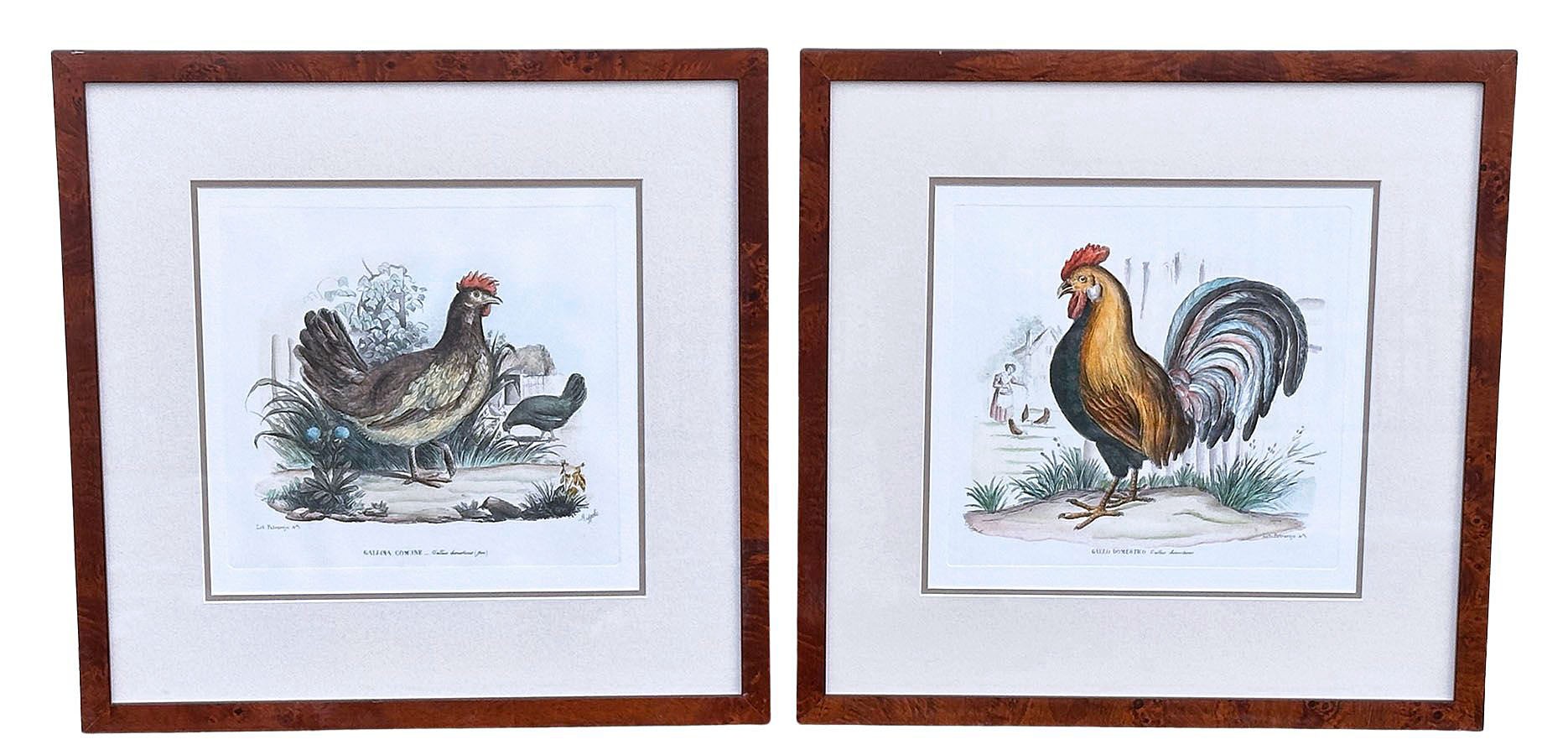 Pair Of Raimundo Petraroja (1863 - 1900) Hen & Rooster Prints. Nicely framed with archival UV plexiglass. 17.75" x 17.75" (framed). The prints are in excellent condition; the frames are good with a couple marks.