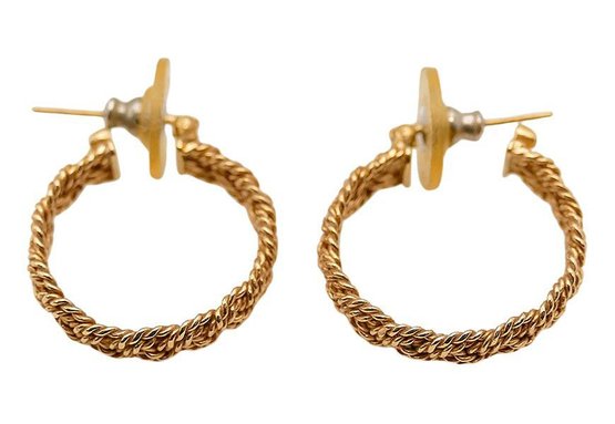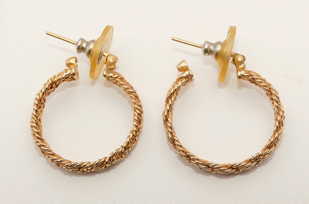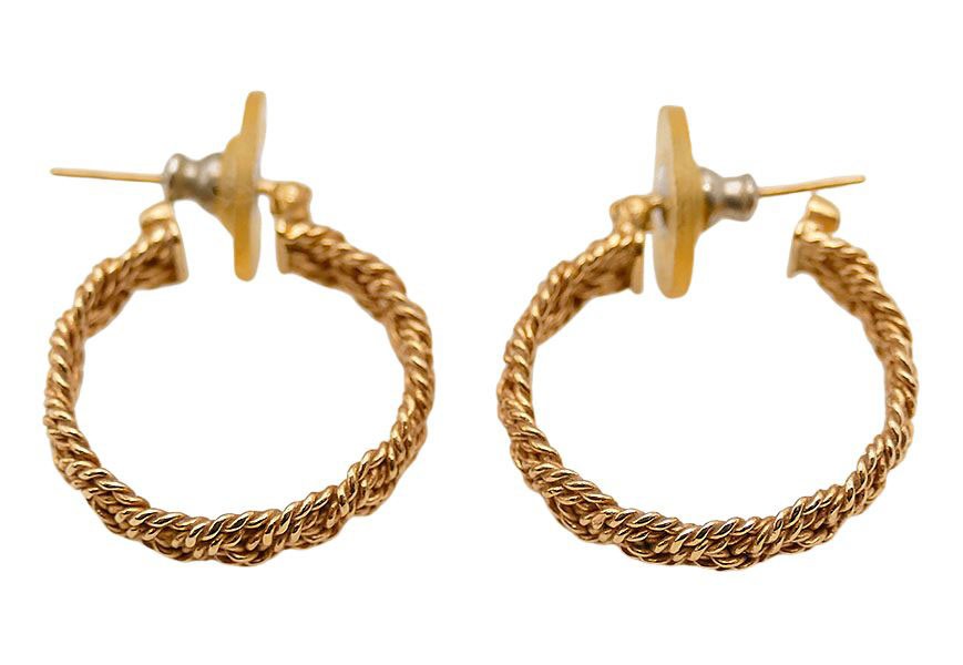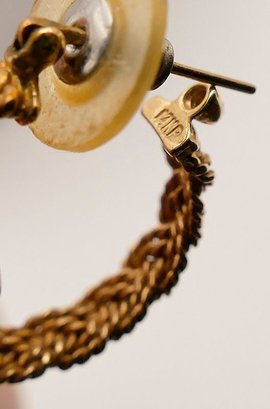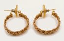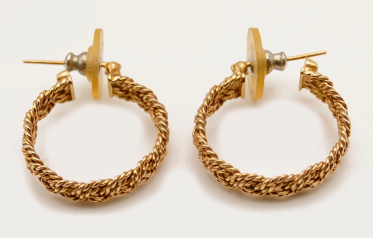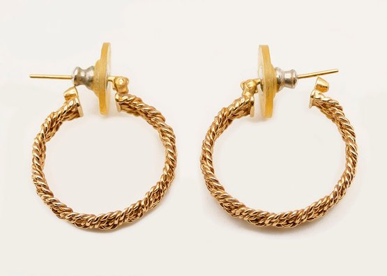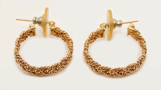 Pair Of Vintage 14K Gold Rope Twist Hoop Earrings. Has the makers mark and gold purity. In Very Good Condition. 7/8" Round (each). Total Weight: 6.93 Grams (.22 Troy Ounces).