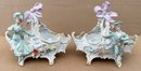 Pair Of Vintage Bisque Figurine Centerpieces. In Very Good Condition. 10" x 5" x 8"h (each)