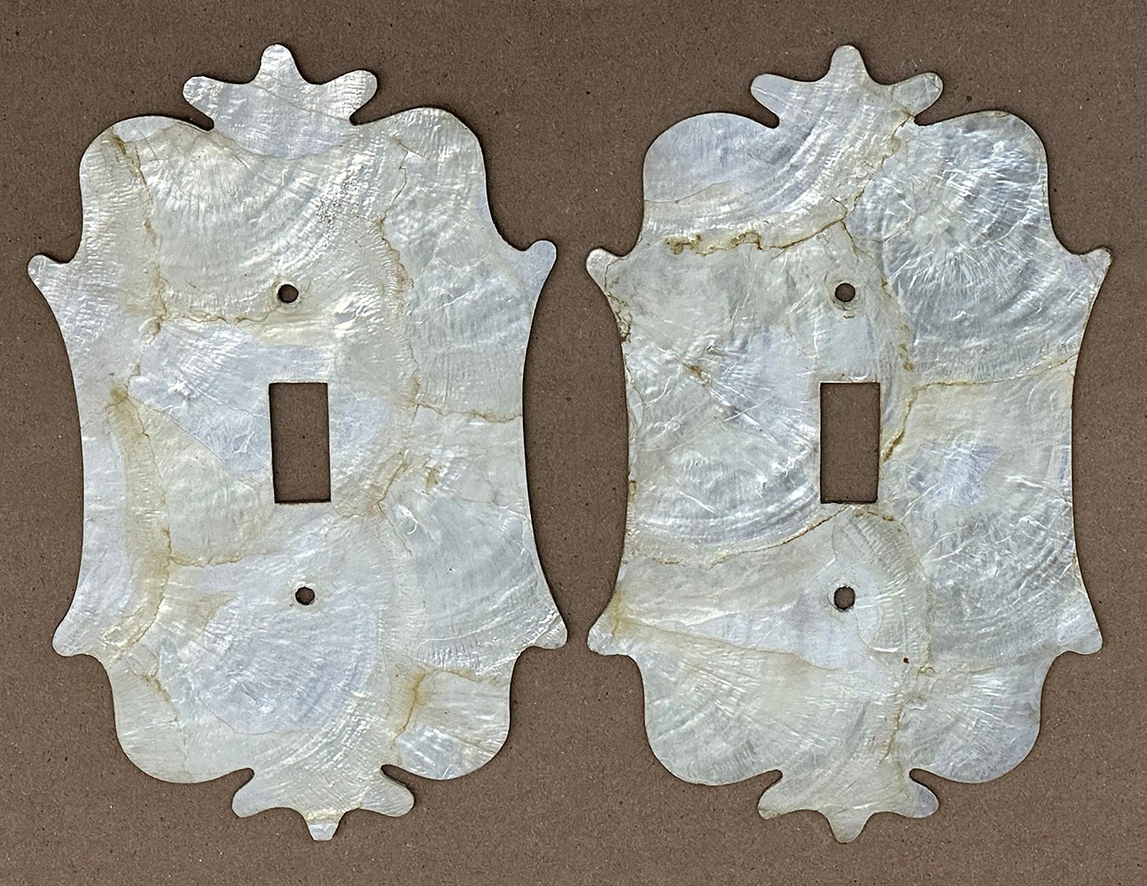 Pair Of Vintage Mother Of Pearl Light Switch Covers. In good condition. 6.25"h x 4"w.