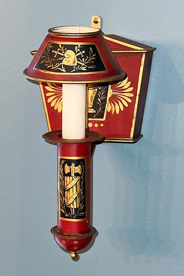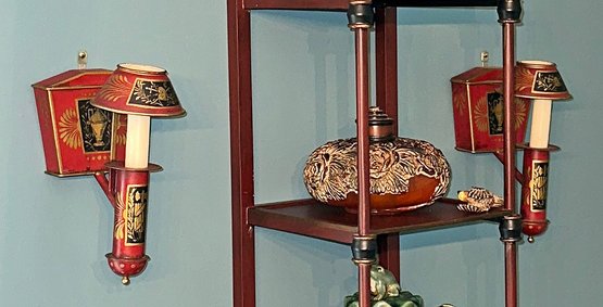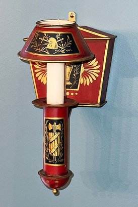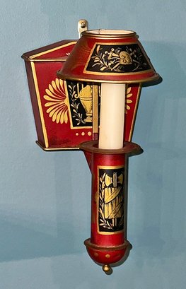Pair Of Vintage Painted Tole Sconces. European Origin. 9.5"h x 5" x 6"