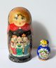 Pair Of Vintage Russian Hand Painted Nesting Dolls. Both are in Very Good Condition. The largest set of dolls is signed on the base. These are 8" and 3.5" tall.