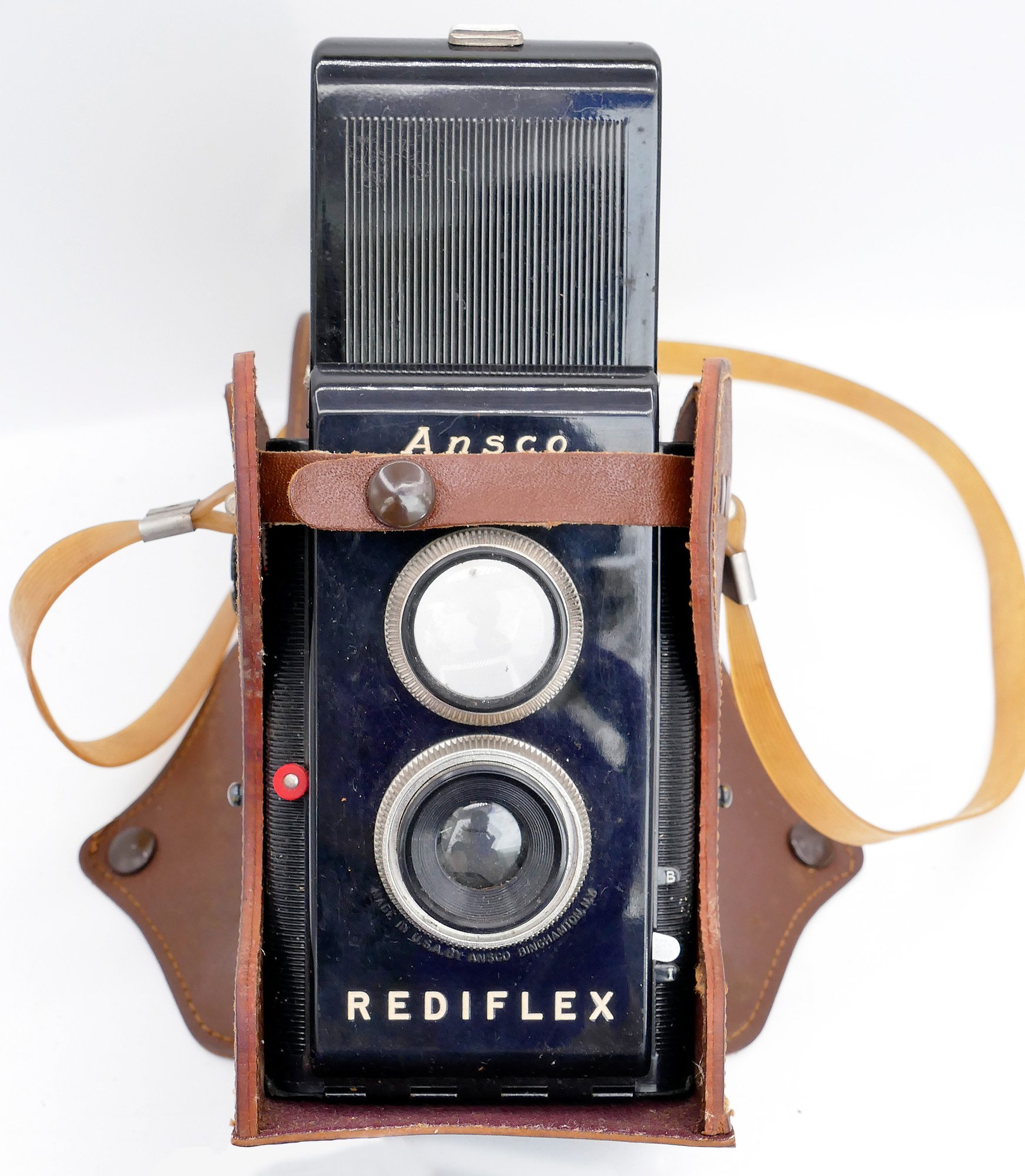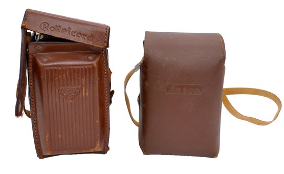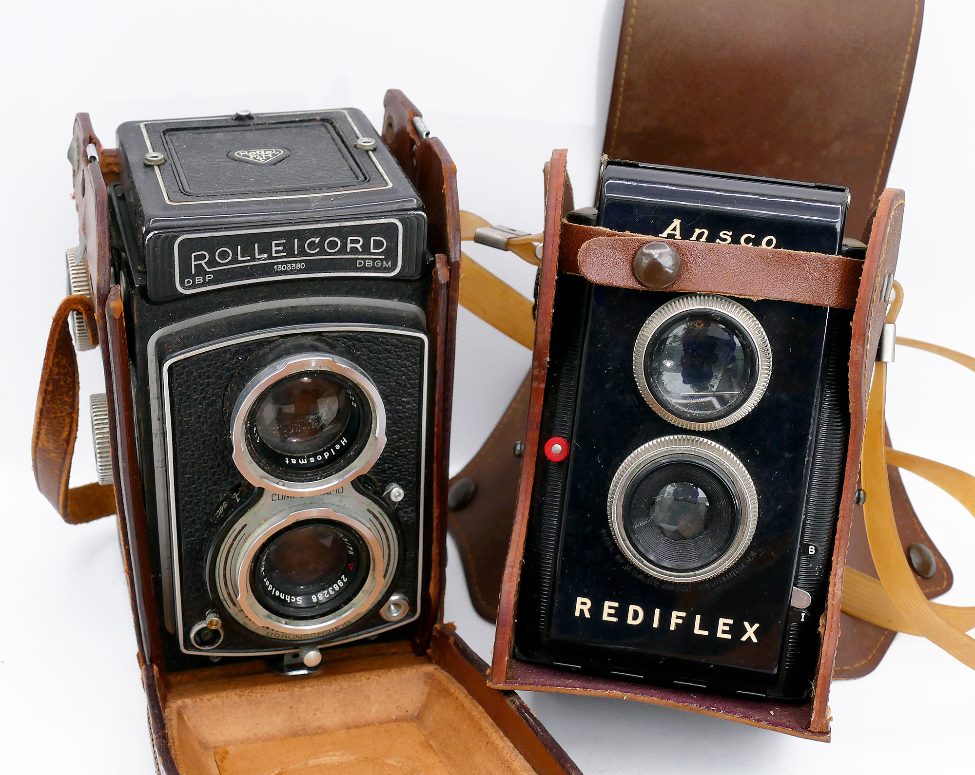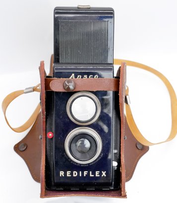 Pair Of Vintage TLR Cameras - the Rolleicord III (1950's) and the Ansco Rediflex (1940's). Untested. The Rolleicord case has wear and tear. The camera probably need cleaning.