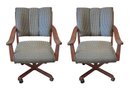 Pair Of Whitaker Upholstered Rolling Armchairs. Great for the office or poker game. 25.5"w x 36.5"h. In good condition with some wood wear. The upholstery is in very good condition.