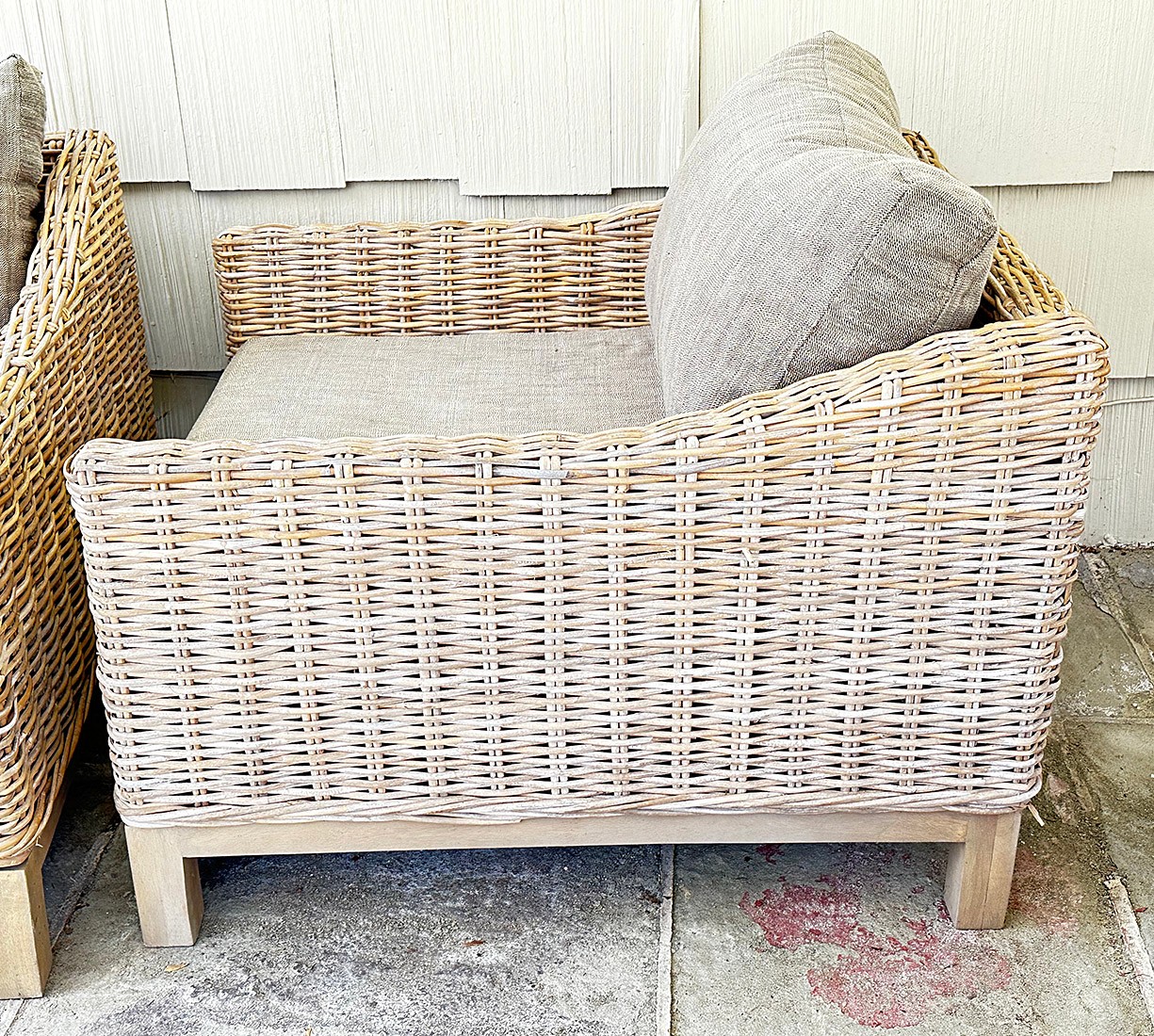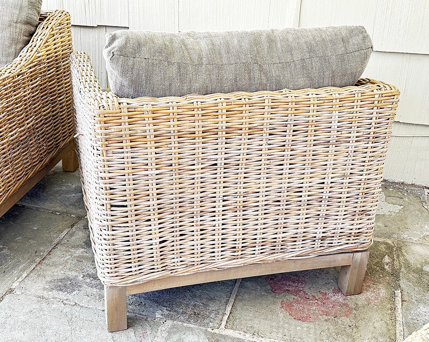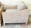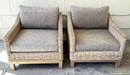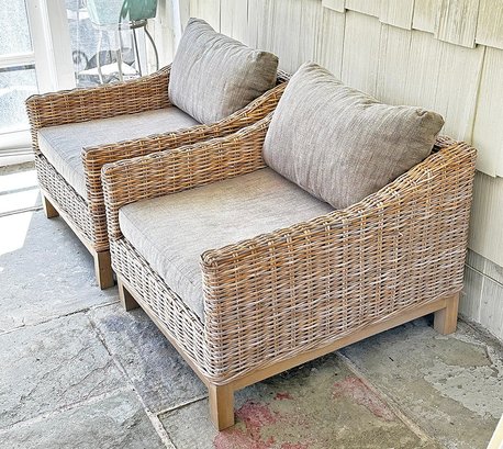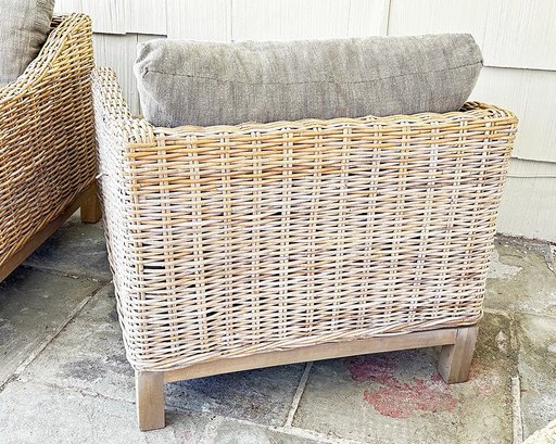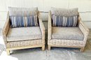 Pair Of Wood & Wicker Armchairs. With cushions and pillow.