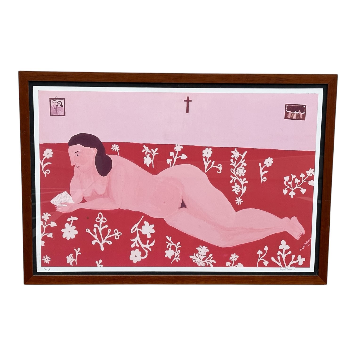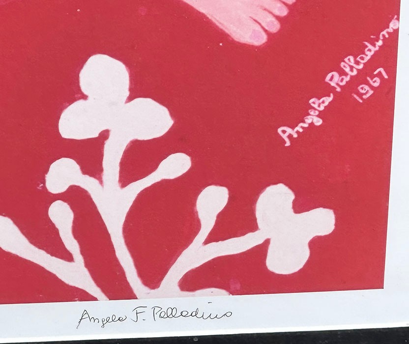 Angela Palladino (Italy, 1929) Print "Filomena". Signed in pen by the artist. Edition Size: 5. The print is in Very Good Condition. The frame is good a couple marks. 28" x 36" (frame).