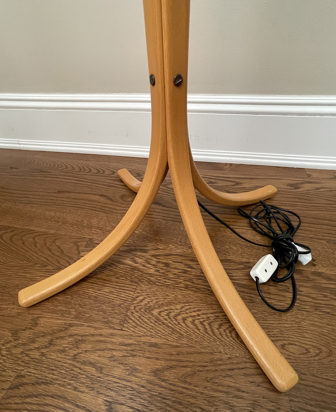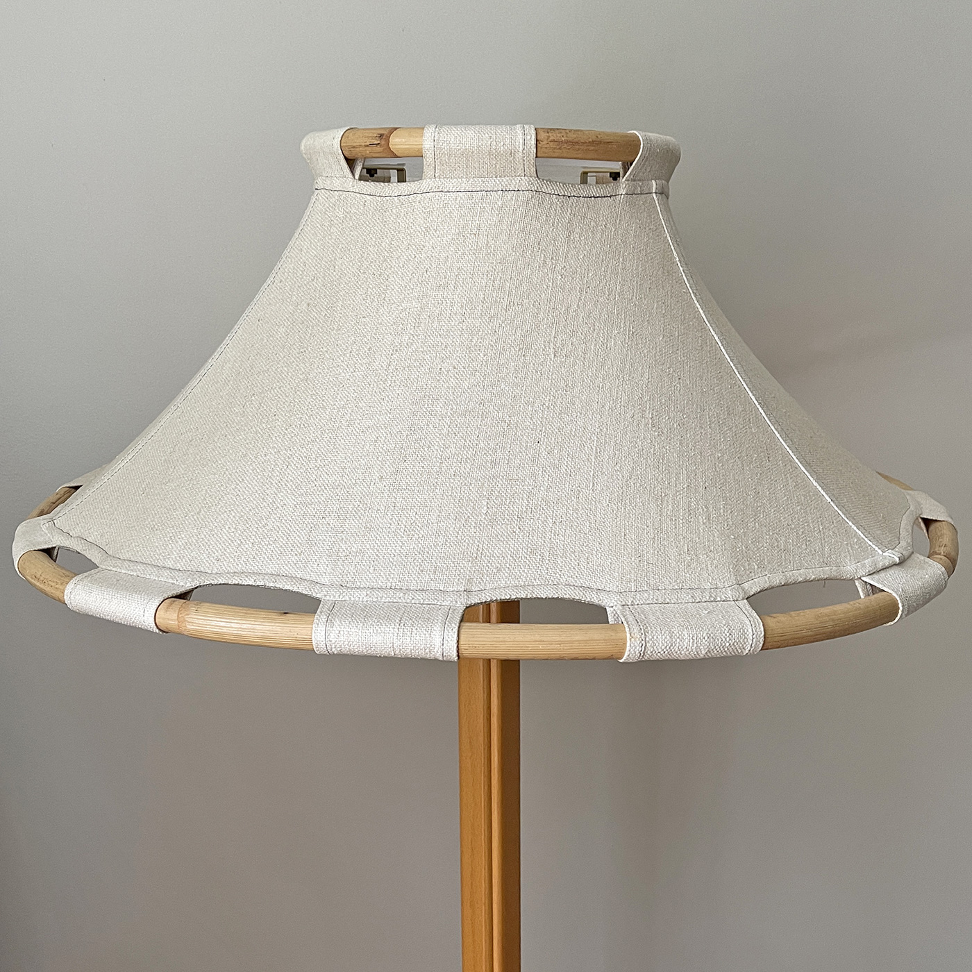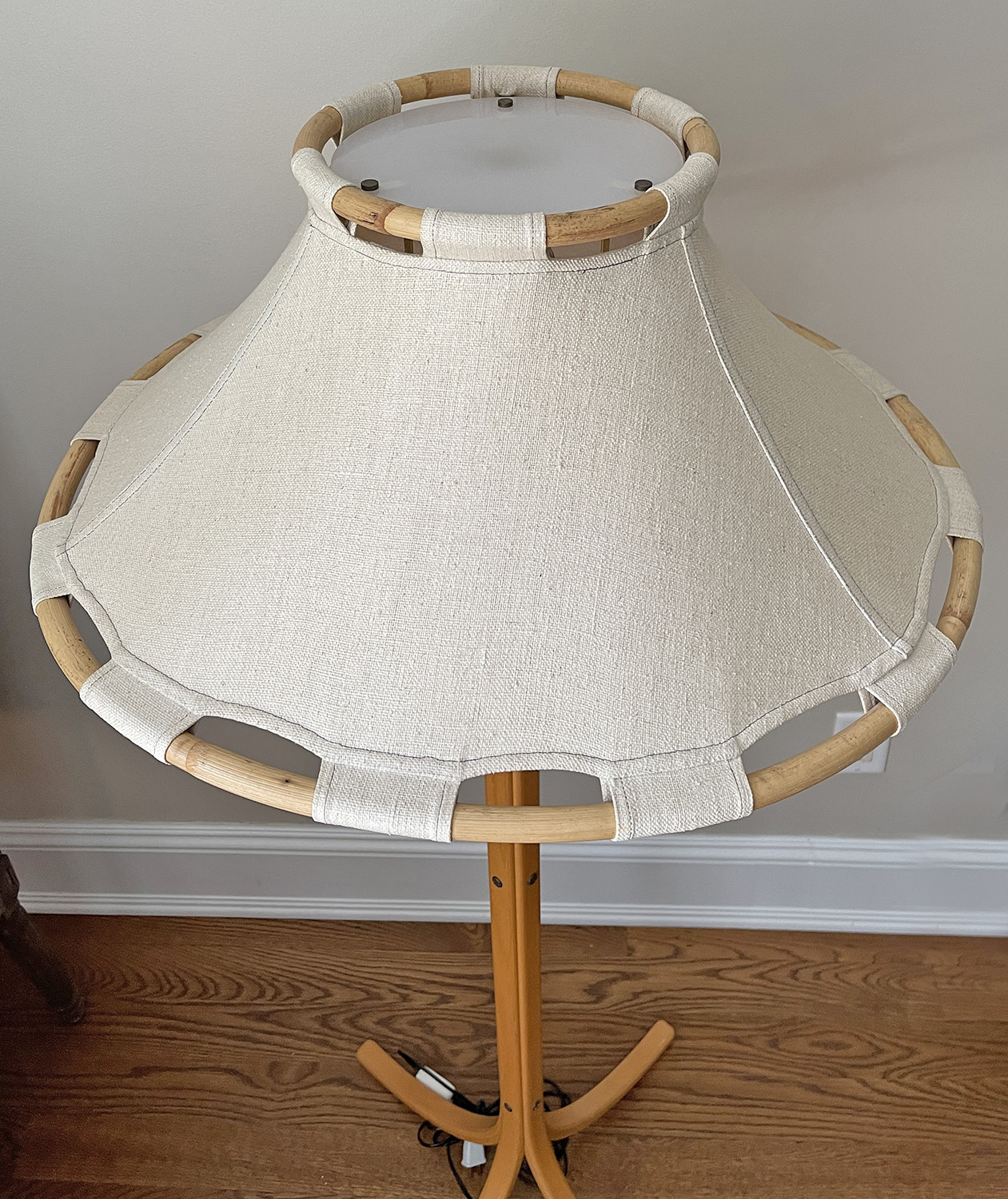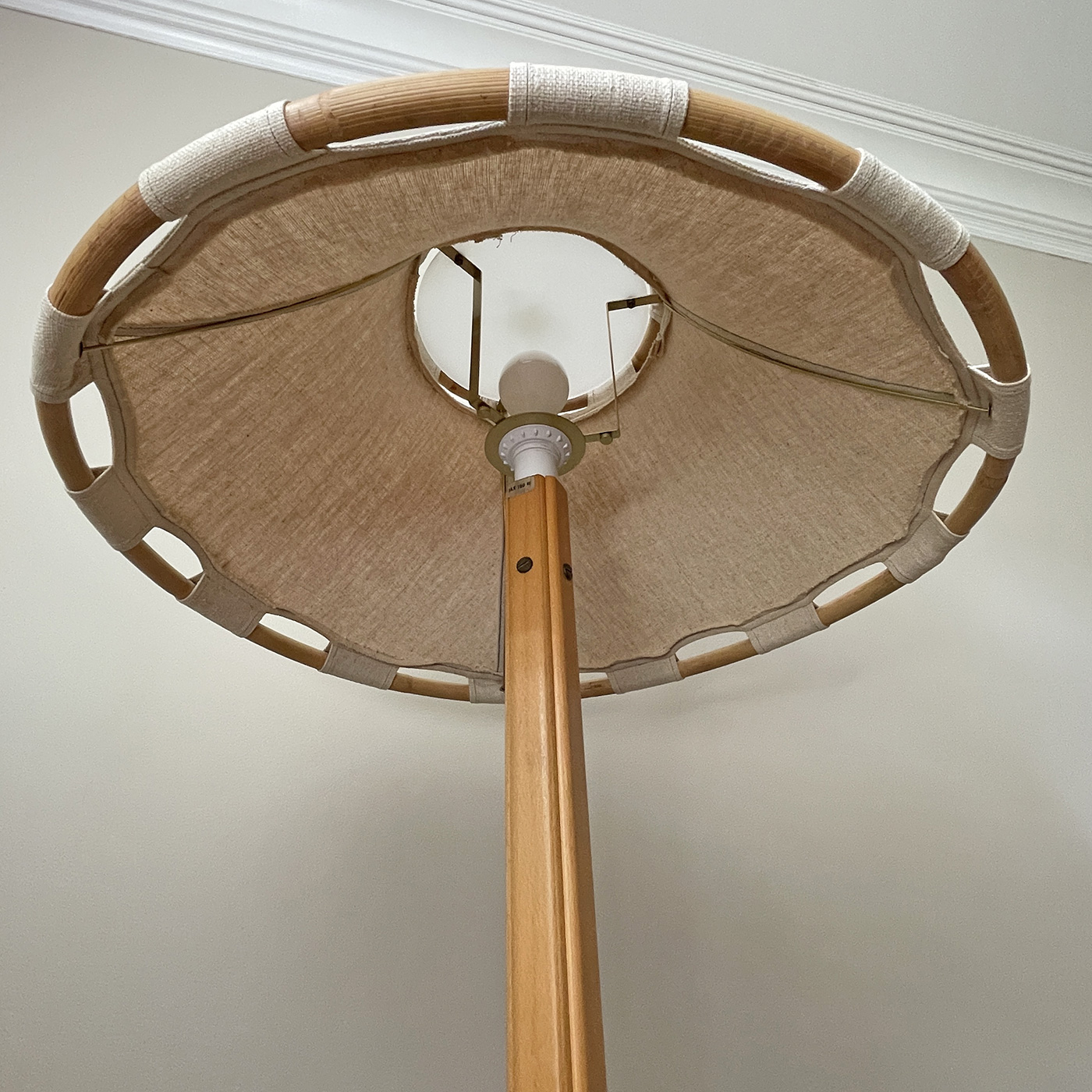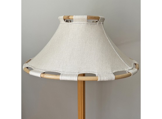 Vintage Scandinavian Anna Ehrner Kosta Lampan Rattan, Wood, And Linen Table Lamp - Sweden - C. 1970'S. In Good Working Condition.