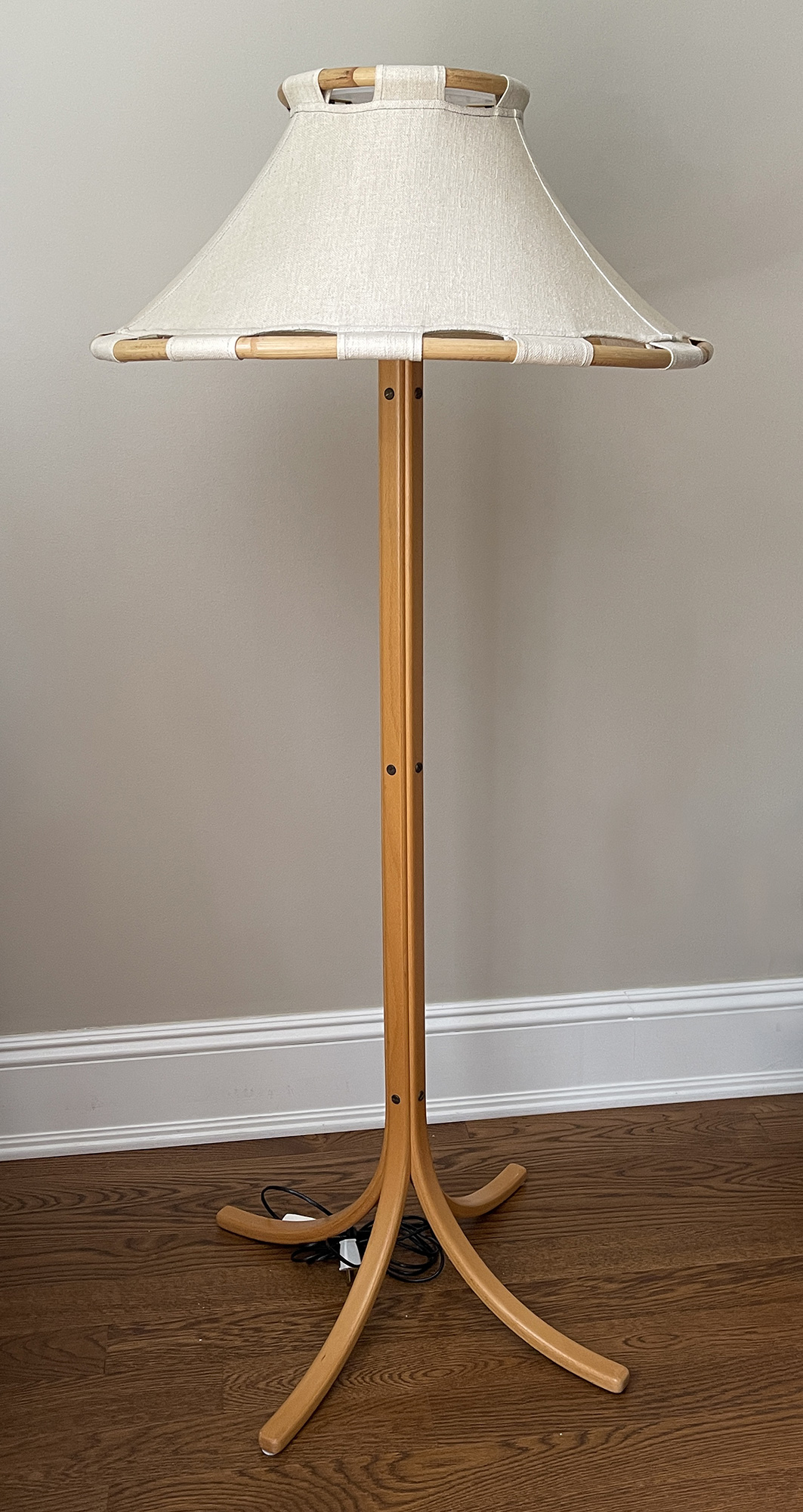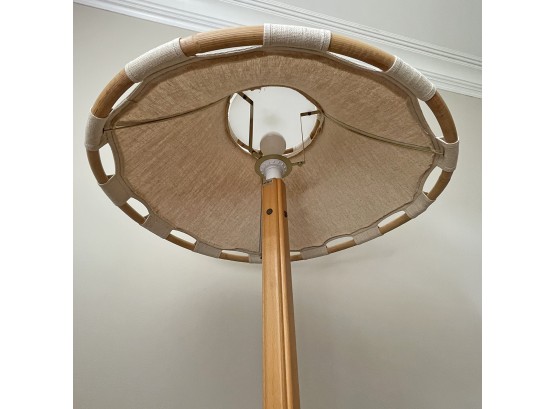 Measurements: 25" shade diameter, 56" tall x 23" diameter base. The pole is 2" wide. In Very Good Cosmetic Condition.