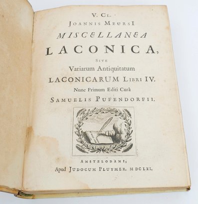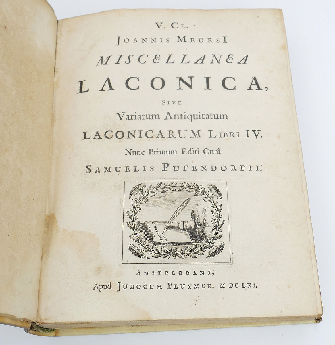 Antiquarian & Collectible Book From 1661 - JOANNIS MEURSI. Vellum spine, cover and back. In good condition with a small area of staining.
