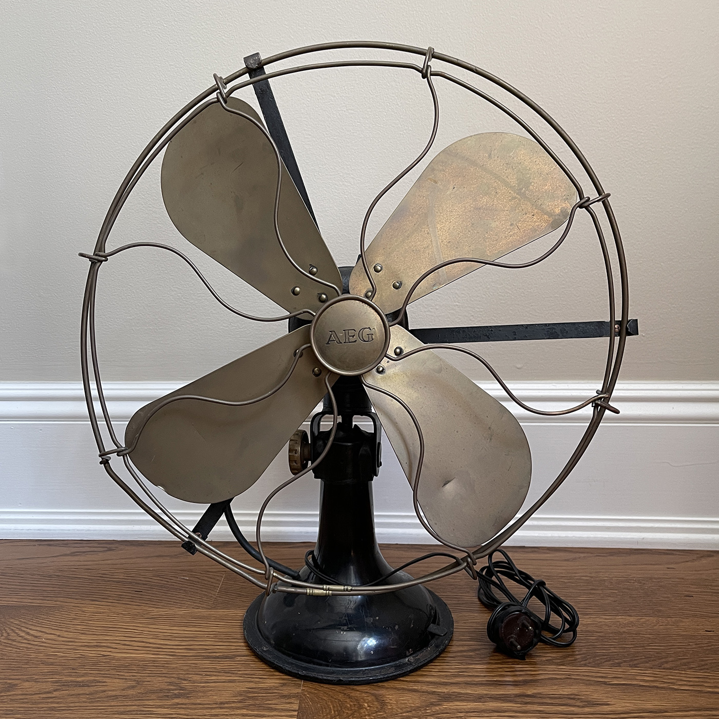 Antique AEG (Germany) Electric Fan - Brass Blades / Cast Iron Base. 20"h x 17.5"w. Untested. Beautiful Classic Look.