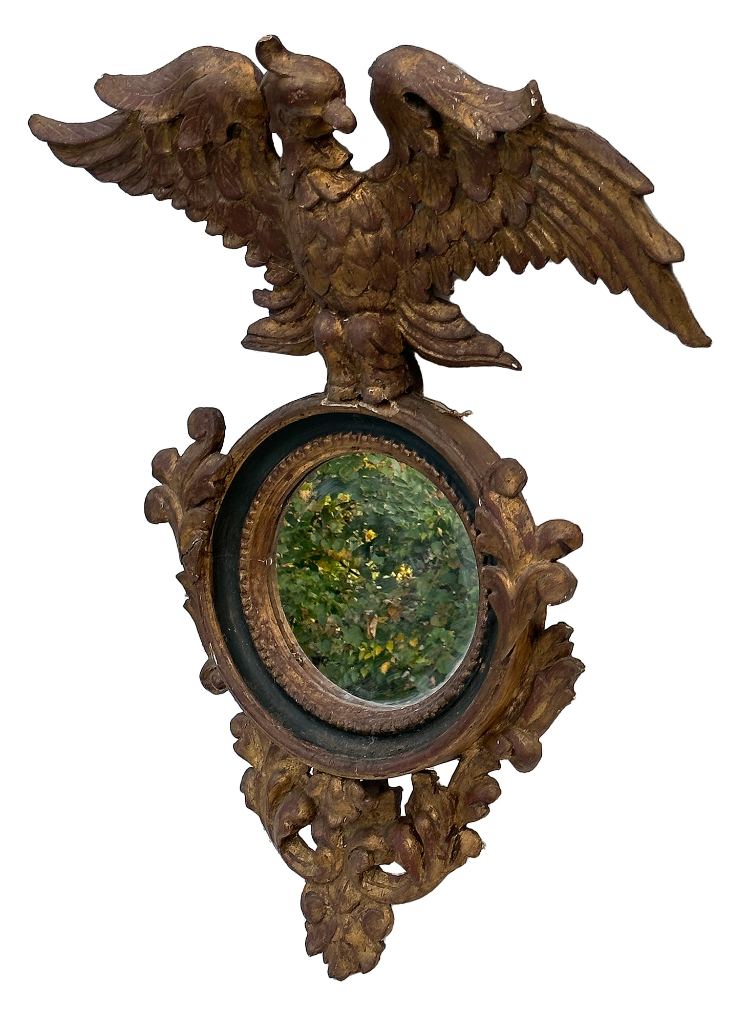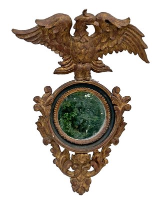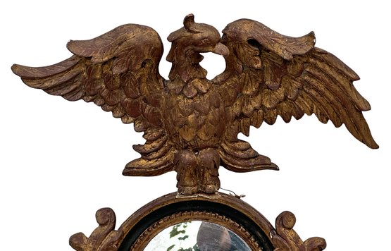 Antique Carved Wood / Gesso Eagle Wall Mirror. 1st Half, 20th C. 34"h x 25.5"w x 10"d. In good condition with some chipped gesso and gilt.